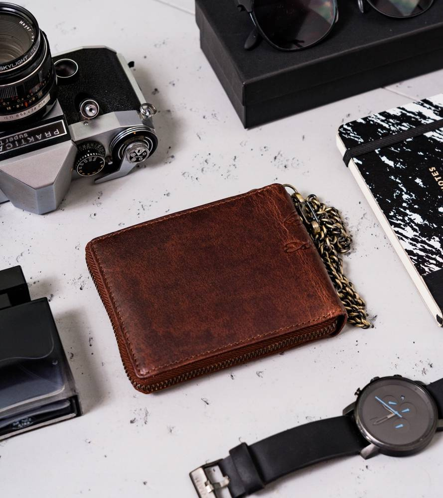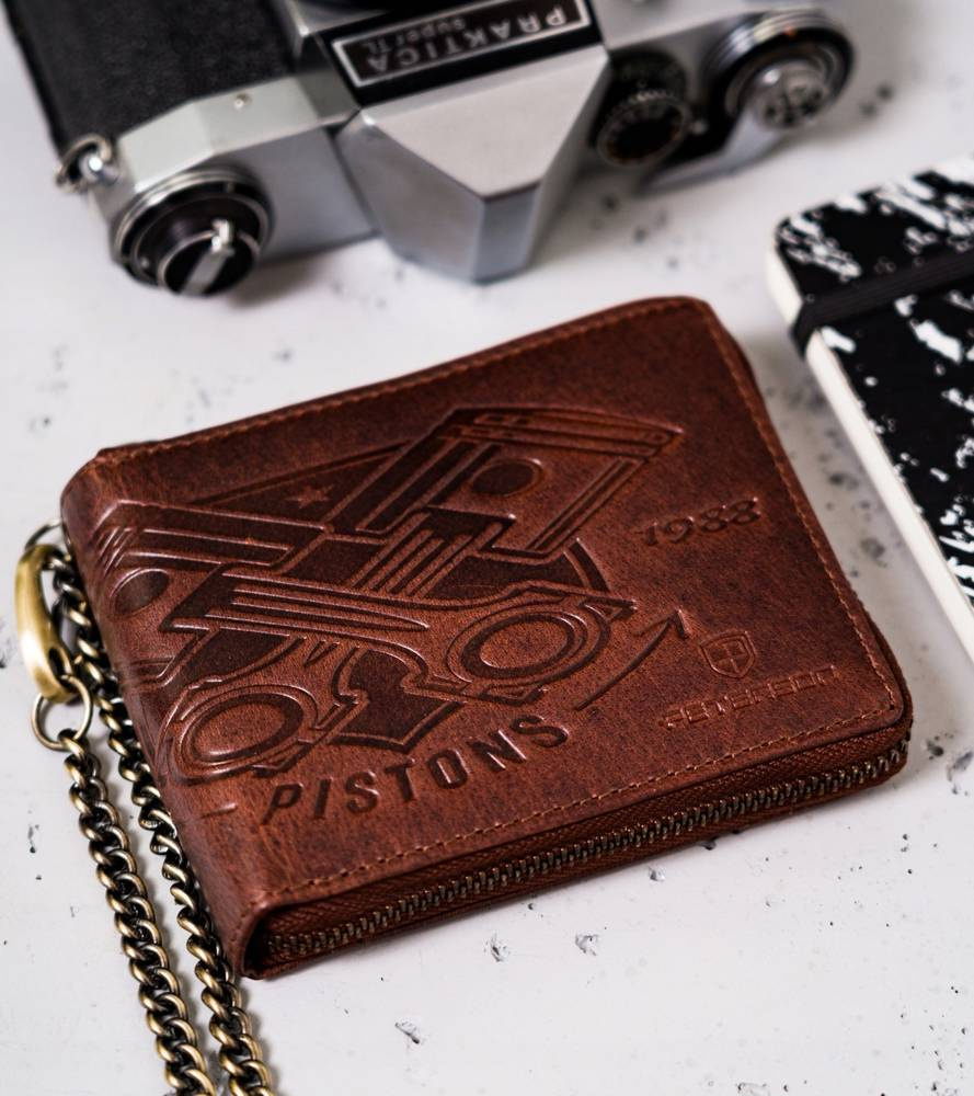 - Długi łańcuch | Portfel zawieszony jest na długim i solidnym łańcuszku, dzięki któremu go nie zgubisz! Przydatne przede wszystkim podczas jazdy motocyklem!