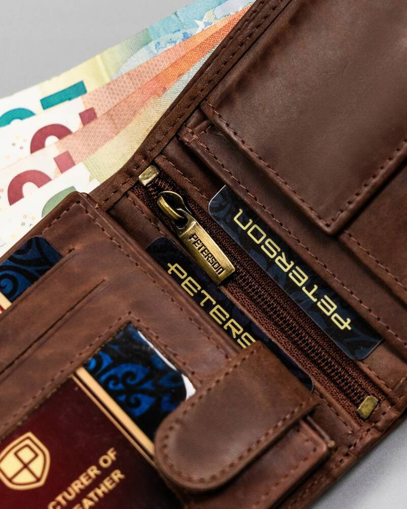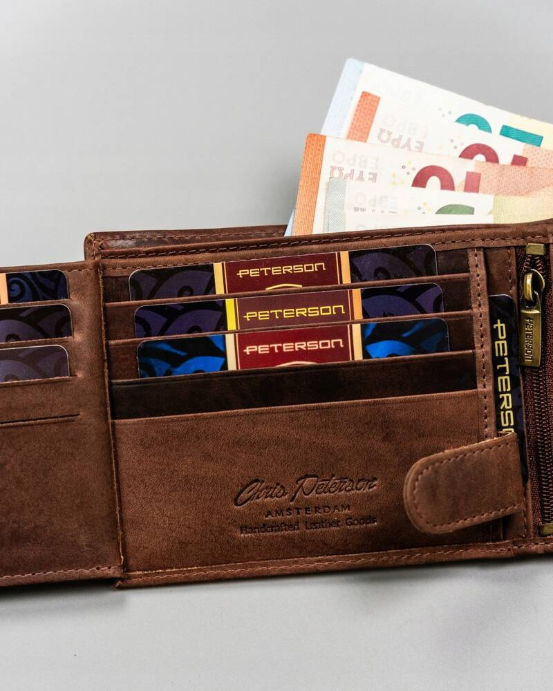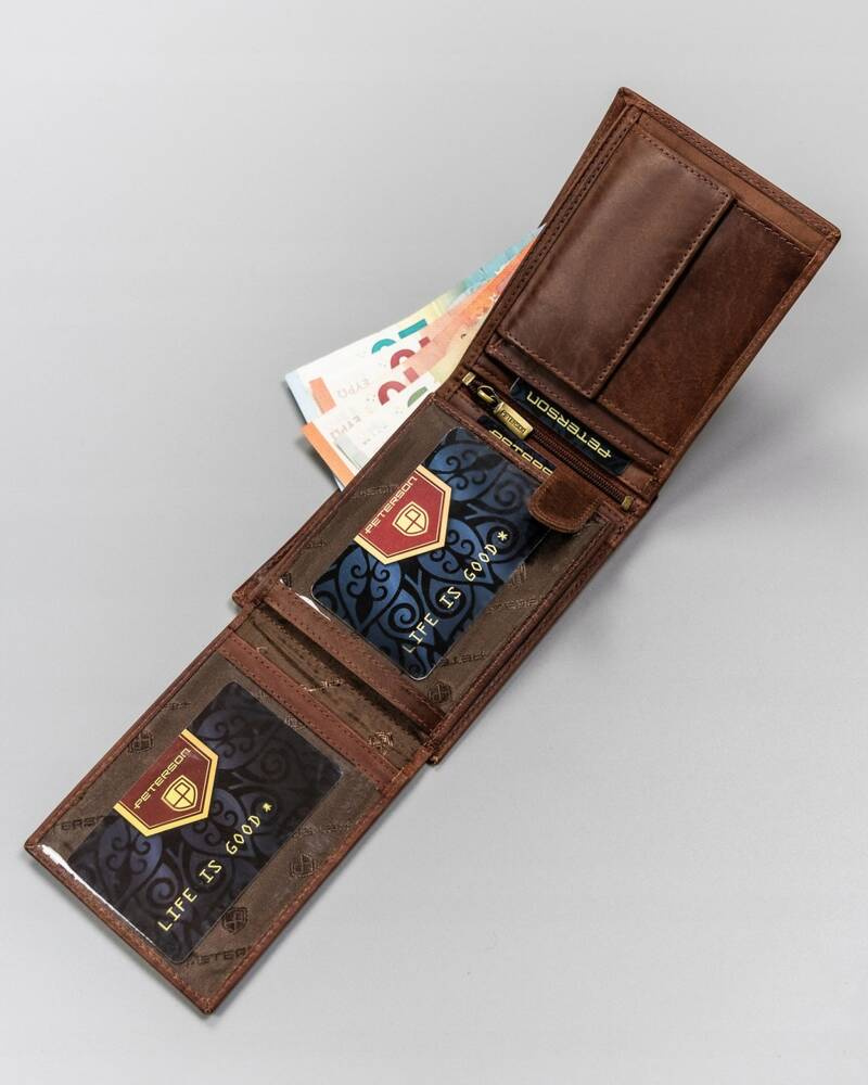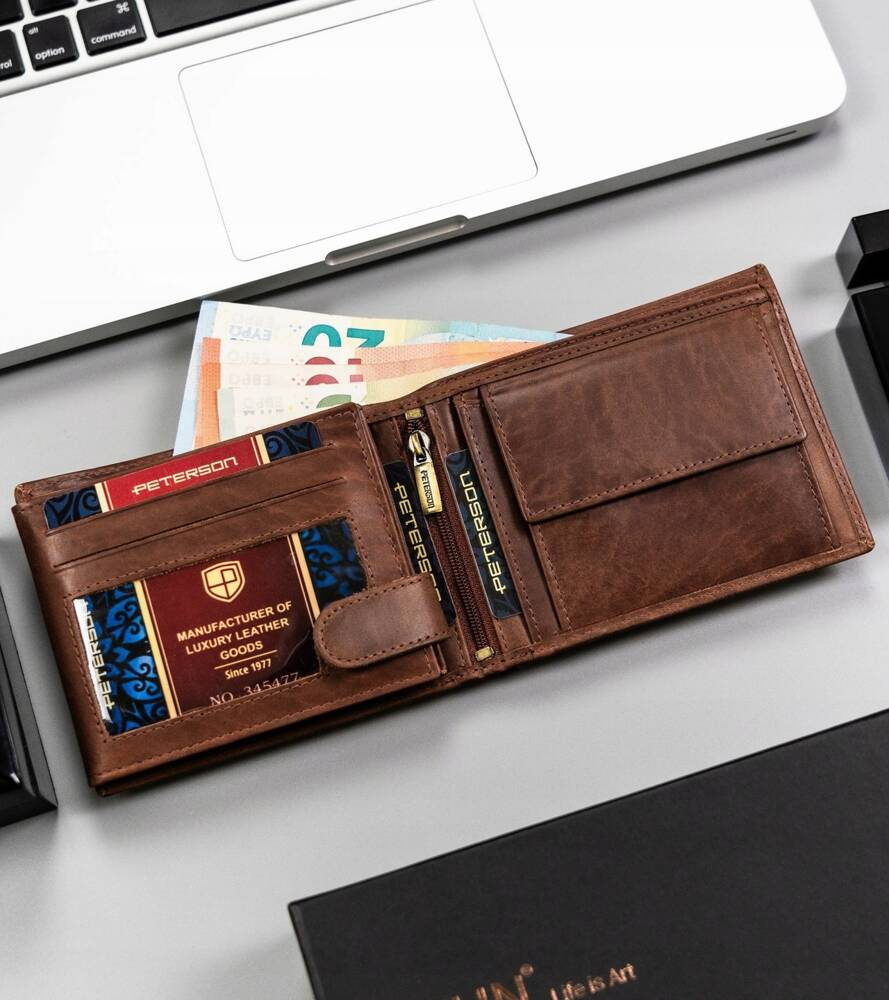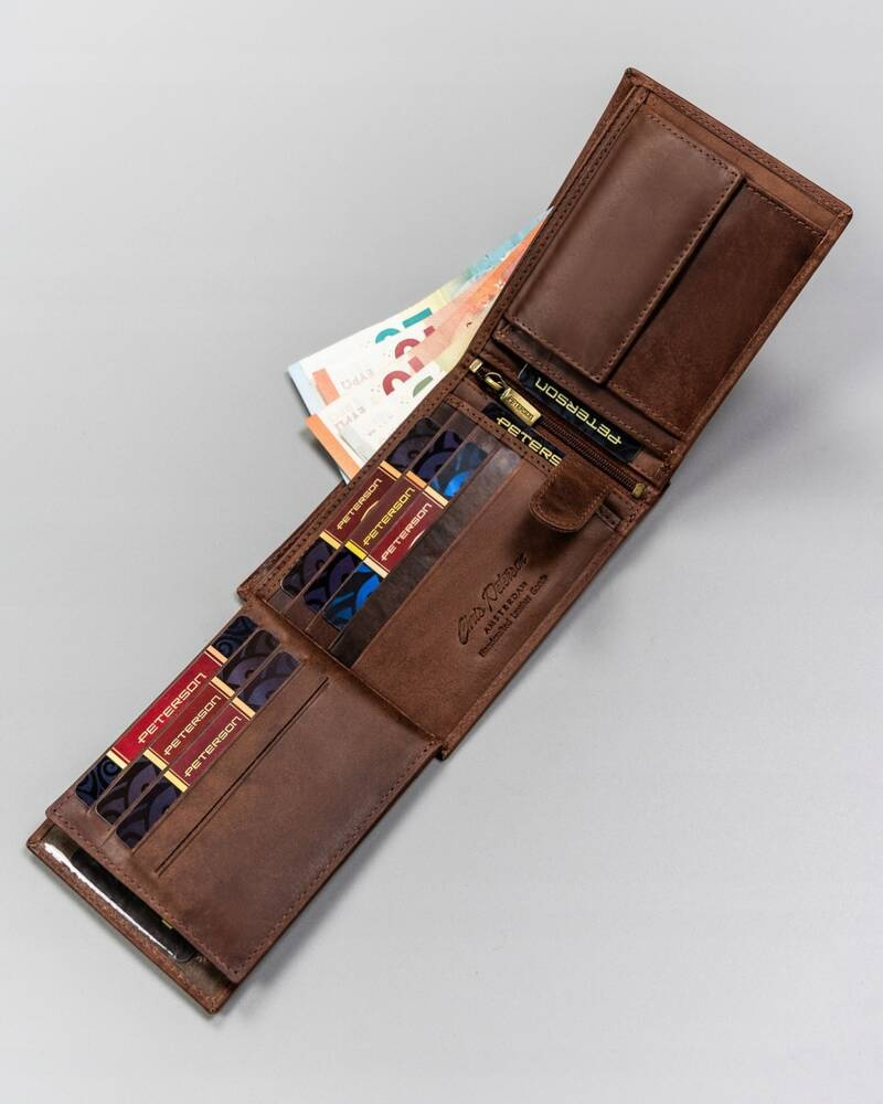 Duży, skórzany portfel męski z ozdobnym tłoczeniem – Peterson