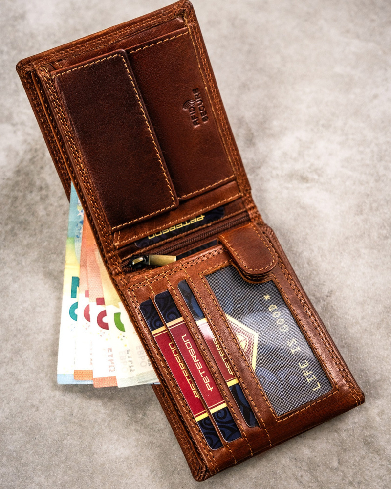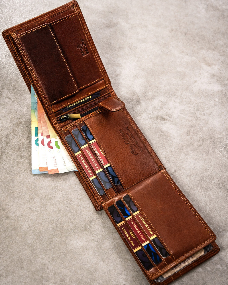 Posiada rozbudowane wnętrze – będzie idealnym wyborem, jeżeli na co dzień nosisz dokumenty w dużym formacie jak np. dowód rejestracyjny. Ponadto zmieścisz w nim pokaźne ilości kart oraz gotówki.