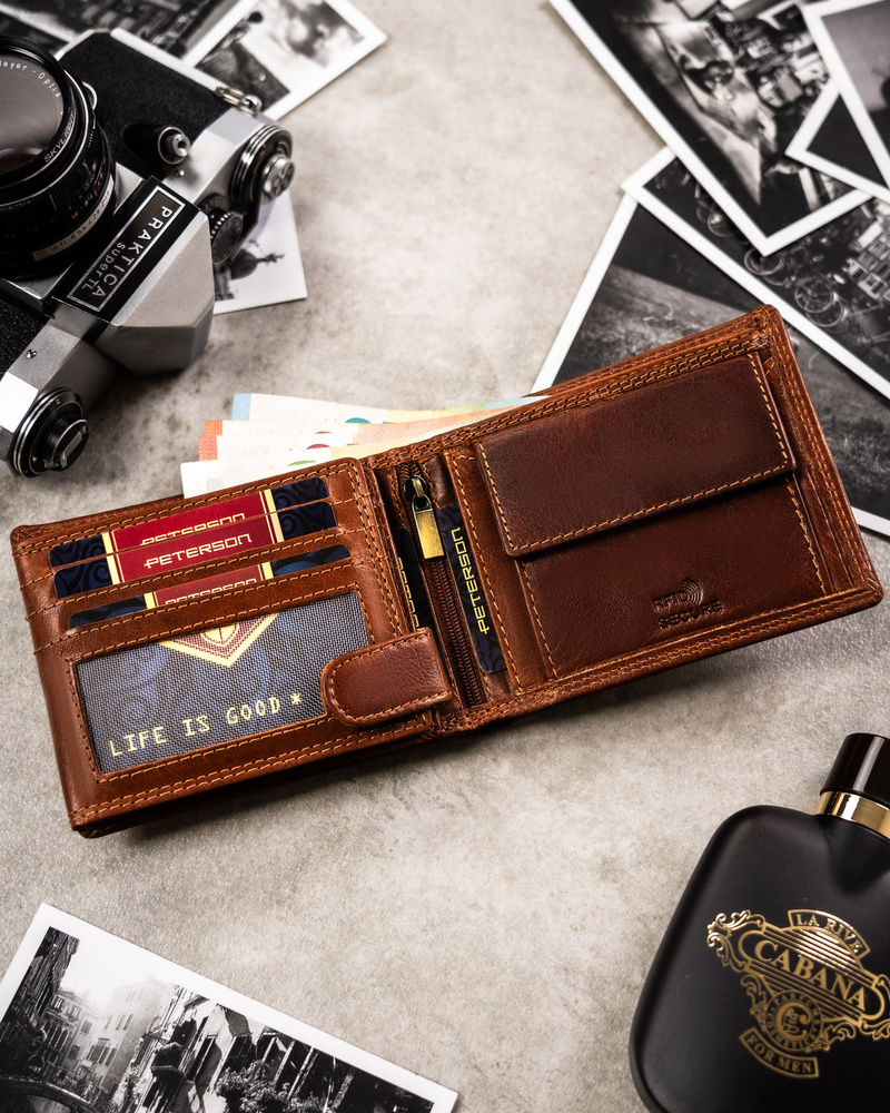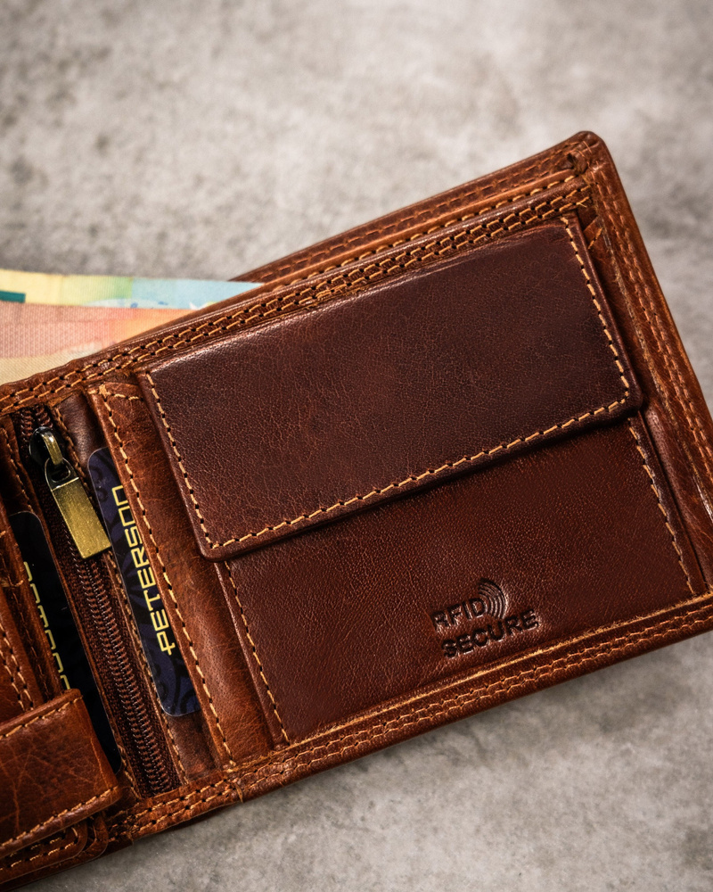 Duży, skórzany portfel męski z tłoczeniem przedstawiającym znak zodiaku - PetersonDuży, skórzany portfel męski z tłoczeniem przedstawiającym znak zodiaku – Peterson