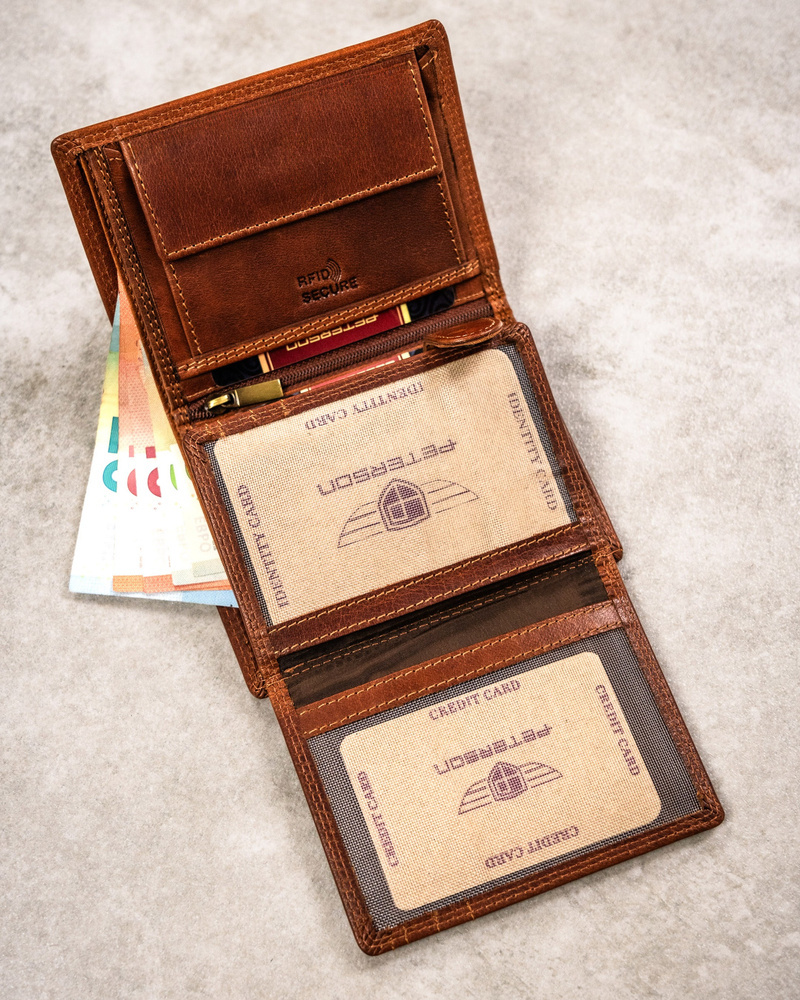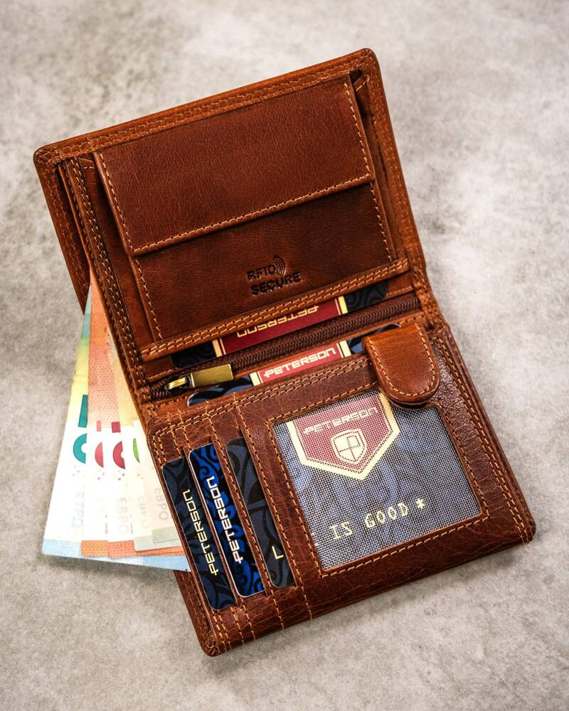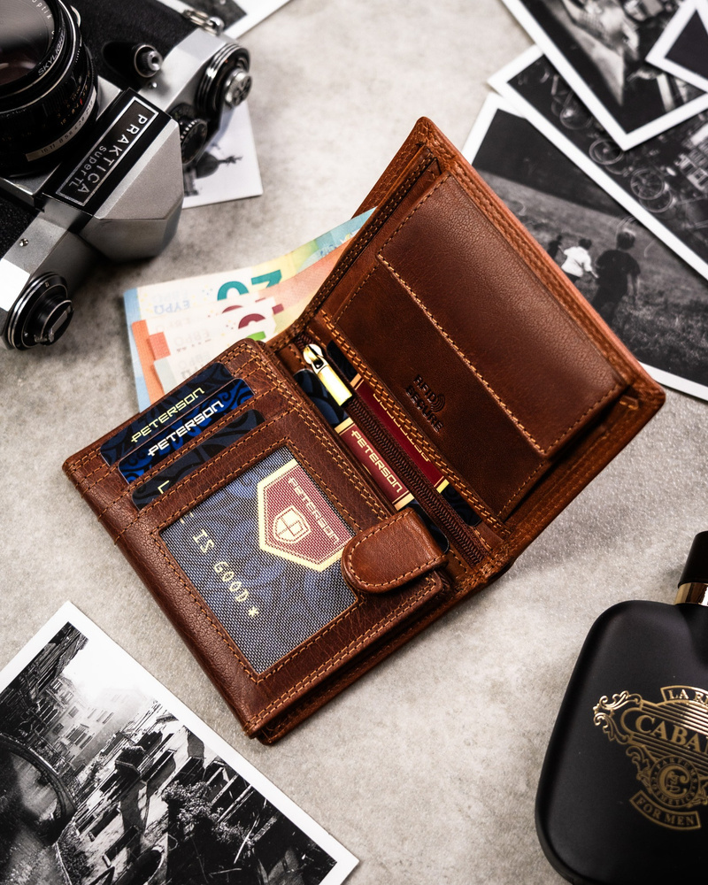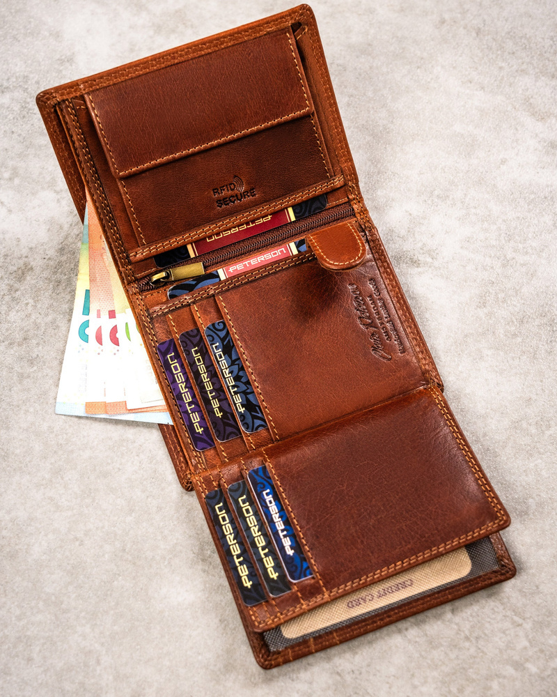 Duży, skórzany portfel męski z wytłoczonym znakiem zodiaku – Peterson