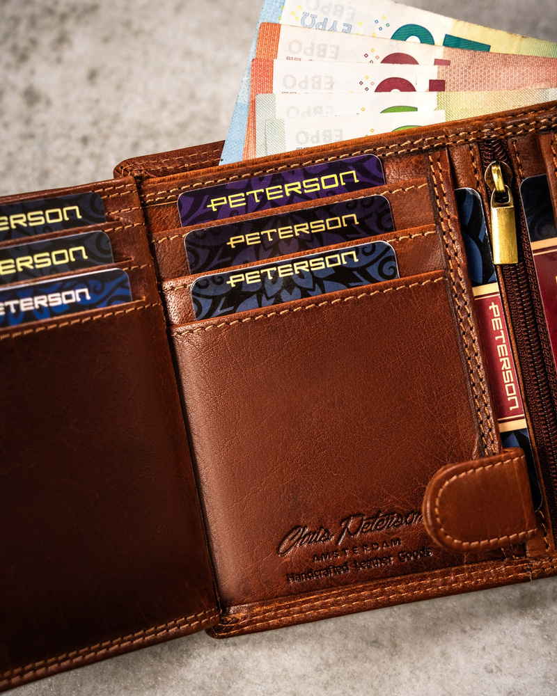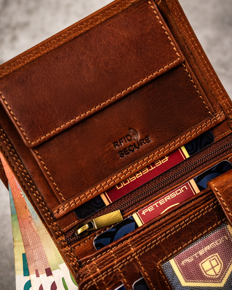 Posiada rozbudowane wnętrze – będzie idealnym wyborem jeżeli na co dzień nosisz dokumenty w dużym formacie jak np. dowód rejestracyjny. Ponadto zmieścisz w nim pokaźne ilości kart oraz gotówki.