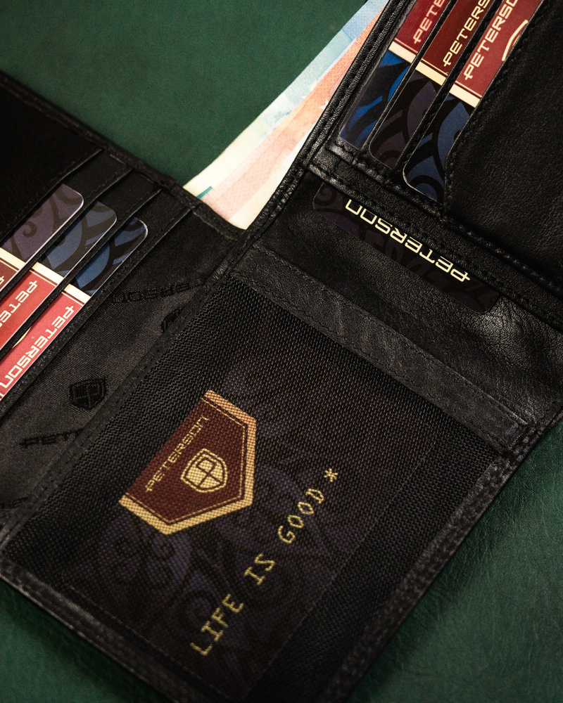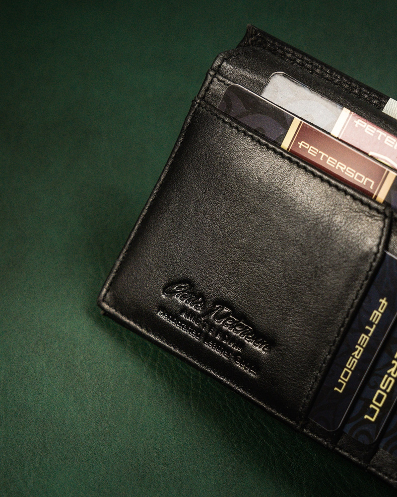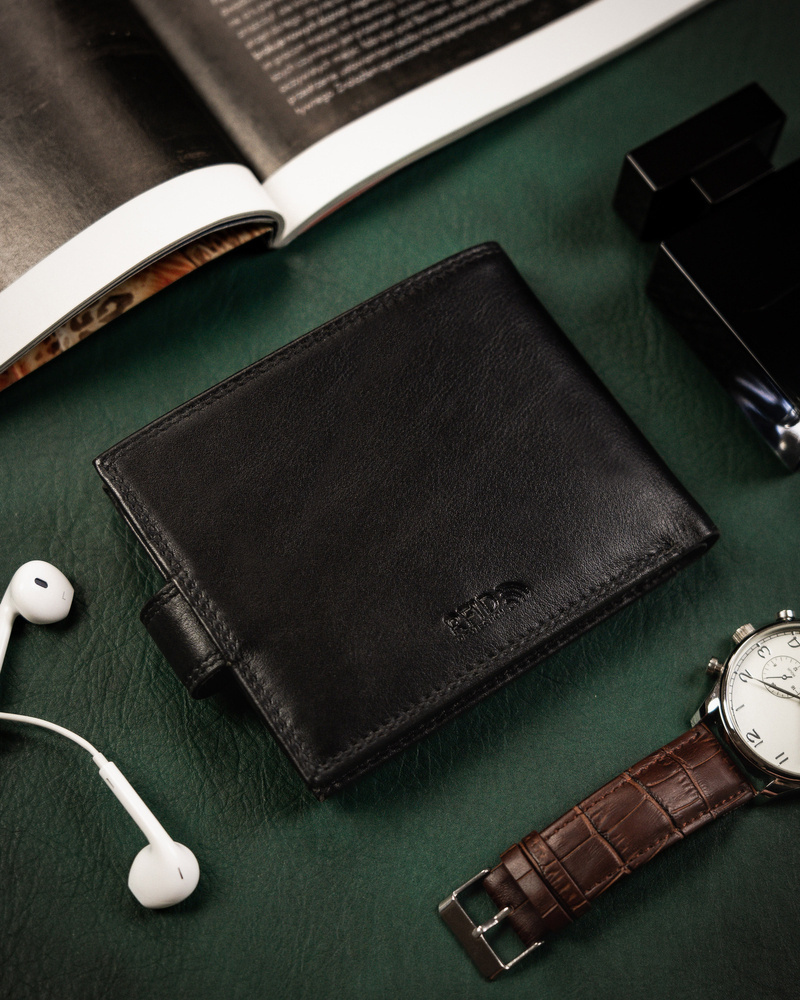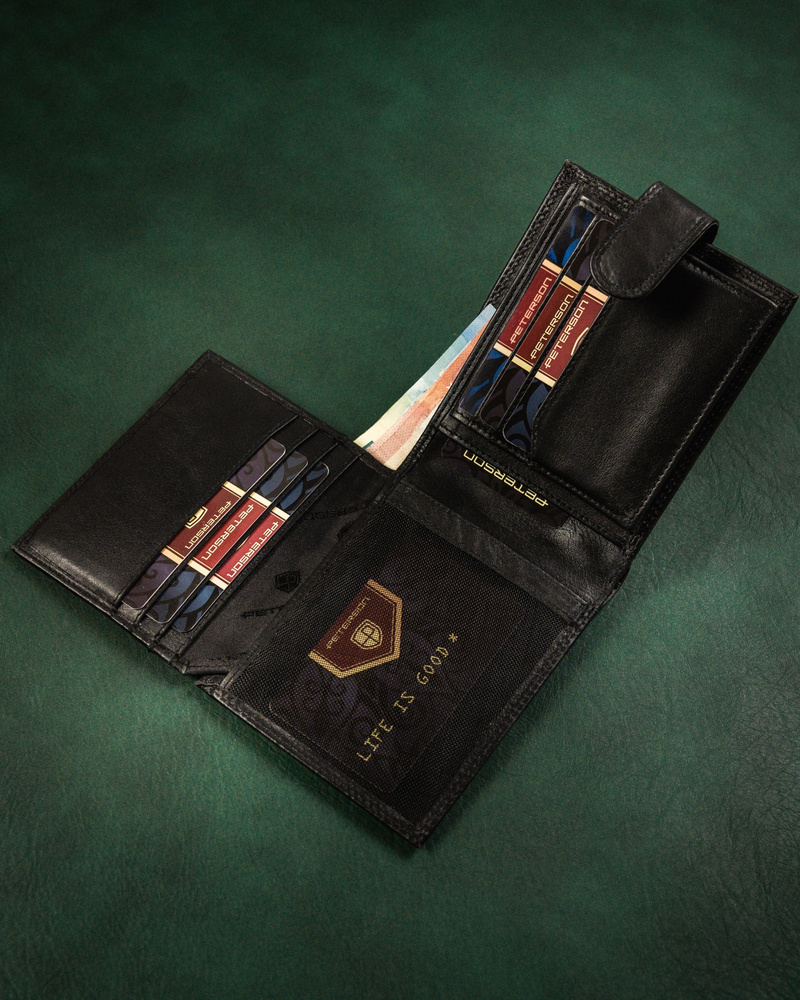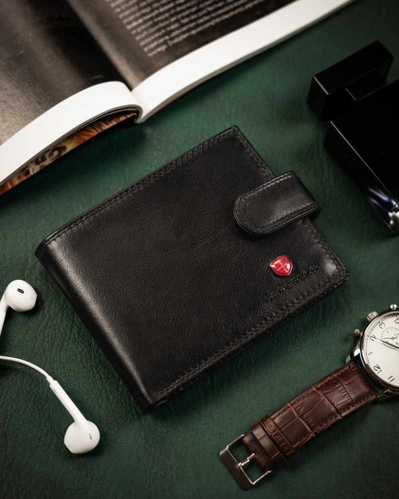 - Ponadczasowy fason dla Panów w każdym wieku | Portfel o klasycznej stylistyce. Model w orientacji poziomej z solidnym zapięciem;