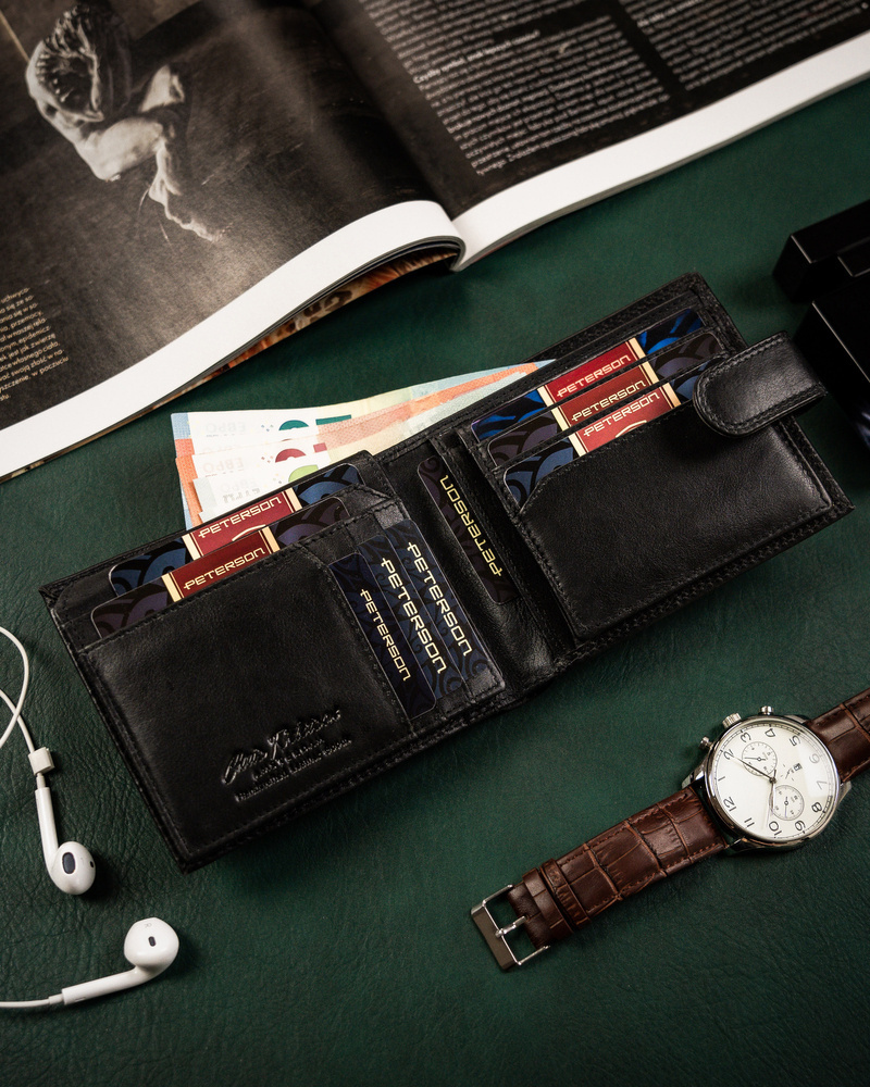 Duży skórzany portfel męski z zapinką na zatrzask – Peterson