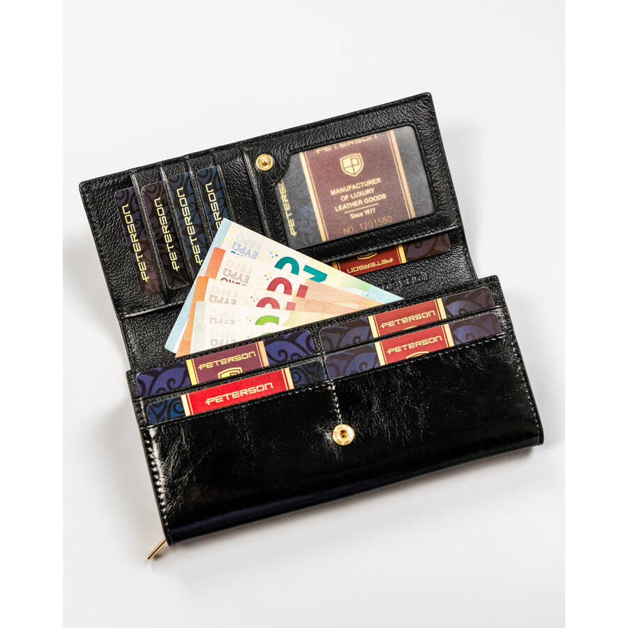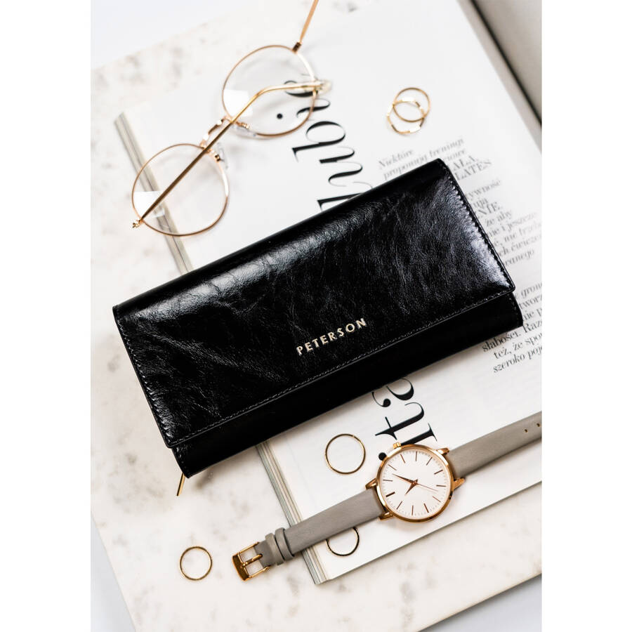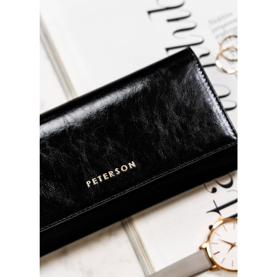 Duży, skórzany portfel w czarnym kolorze zamykany na zatrzask – Peterson
