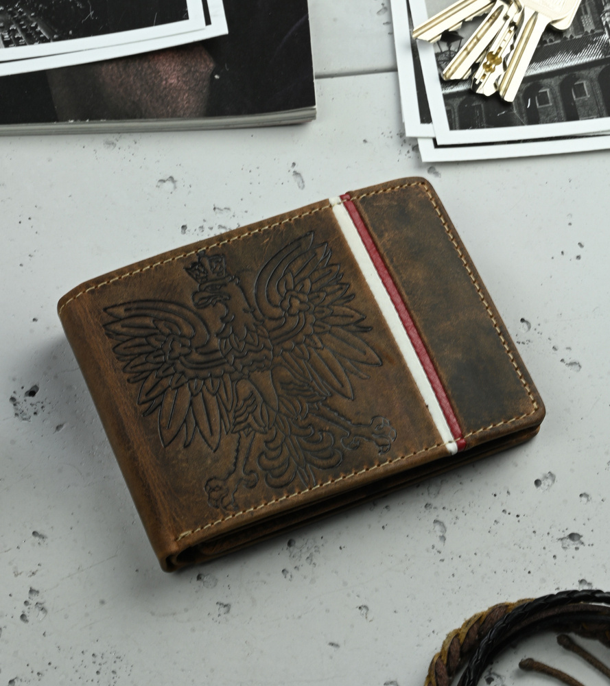 Duży, skórzany portfel z patriotycznym wzornictwem