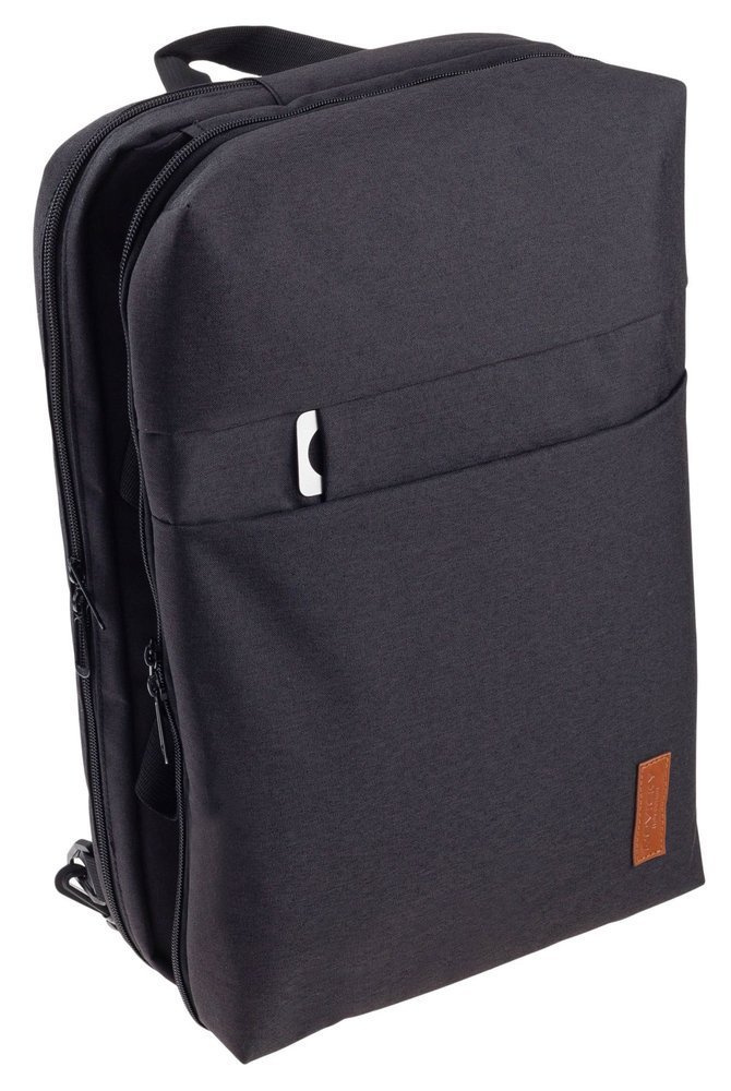 Rewelacyjny plecak, torba na laptopa uszyta z przyjemnej w dotyku tkaniny. Plecak jest niezwykle funkcjonalny, ma mnóstwo kieszeni i skrytek. O jego funkcjonalności świadczy fakt, że można nosić go aż na trzy sposoby! Za pomocą szelek, za rączkę, oraz można go całkiem odwrócić i nosić jak teczkę. Na froncie zainstalowany jest „języczek” który służy do umiejscowienia karteczki ze swoim imieniem. Dzięki temu udając się w podróż, chowając torbę do luku bagażowego jeszcze łatwiej będzie nam go zidentyfikować! Rozwiązania jakie wykorzystano w procesie projektowania plecaka zapewniają bardzo wygodne użytkowanie. Jeśli zdecydujemy się, że ma być to teczka a nie plecak, można schować szelki w specjalnie przystosowaną do tego kieszeń. Bez trudu mieści laptopa 15″.