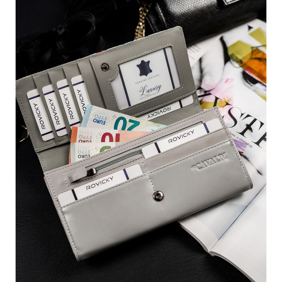 Duży, wielokolorowy portfel damski wykonany ze skóry naturalnej i ekologicznej – 4U Cavaldi