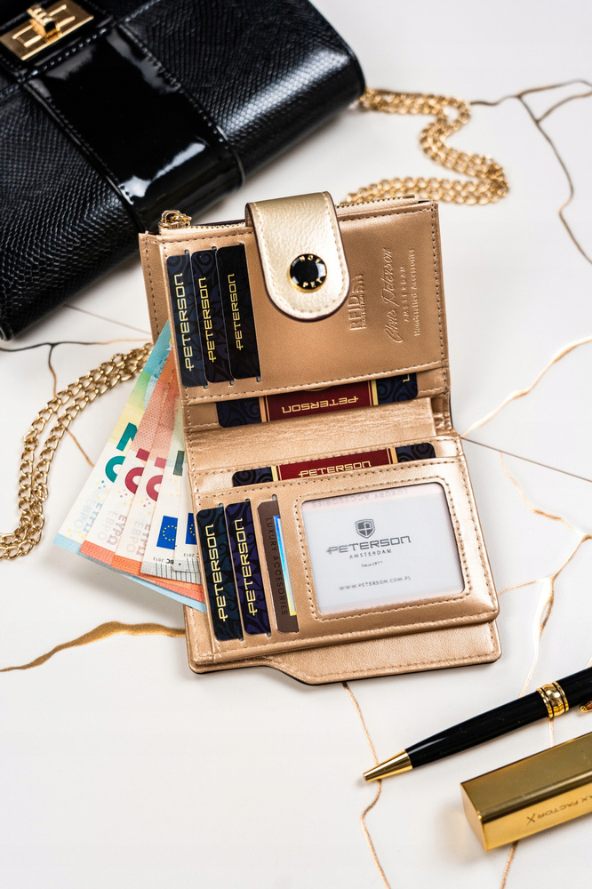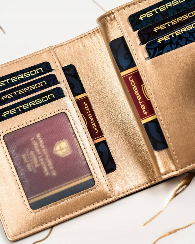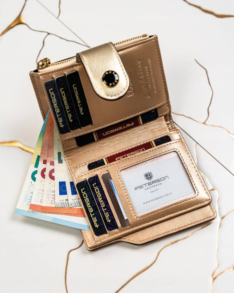Dwusekcyjny, elegancki portfel damski ze skóry ekologicznej – Peterson