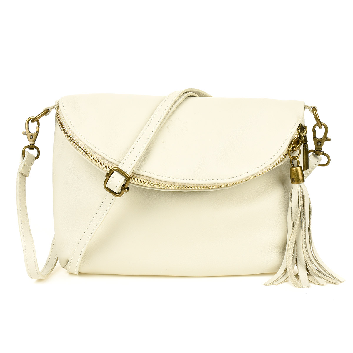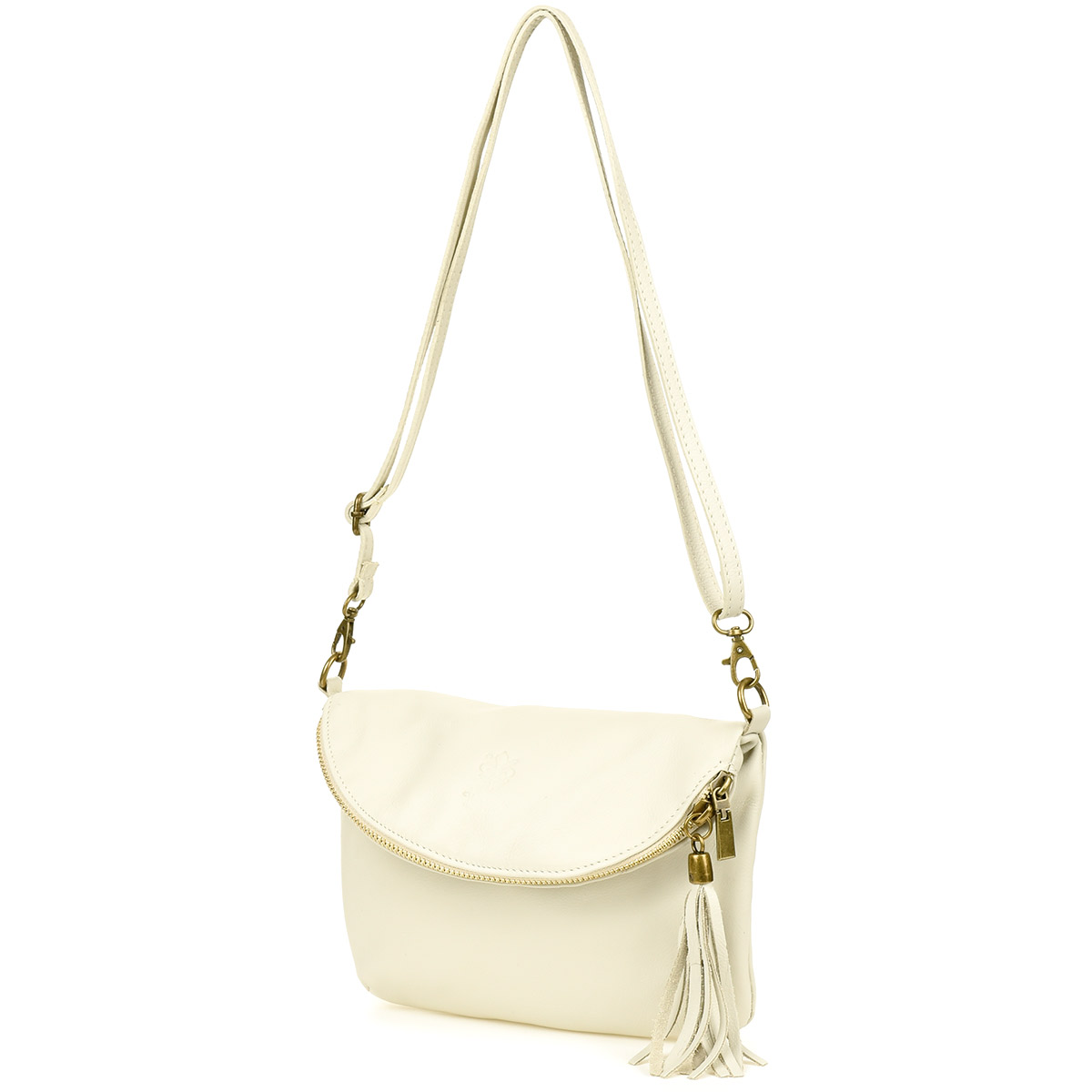 Ecru torebka Damska Skóra Naturalna Listonoszka Klapa B75