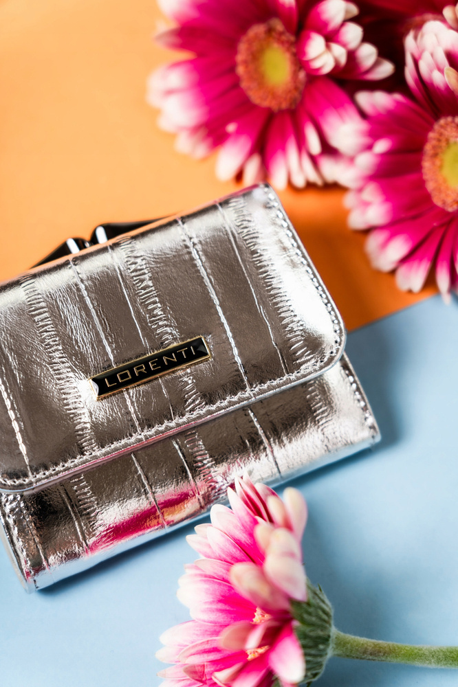 Elegancka portmonetka damska na zatrzask i bigiel - LorentiElegancka portmonetka damska na zatrzask i bigiel – Lorenti