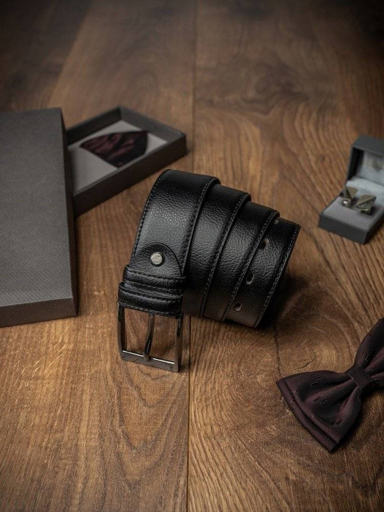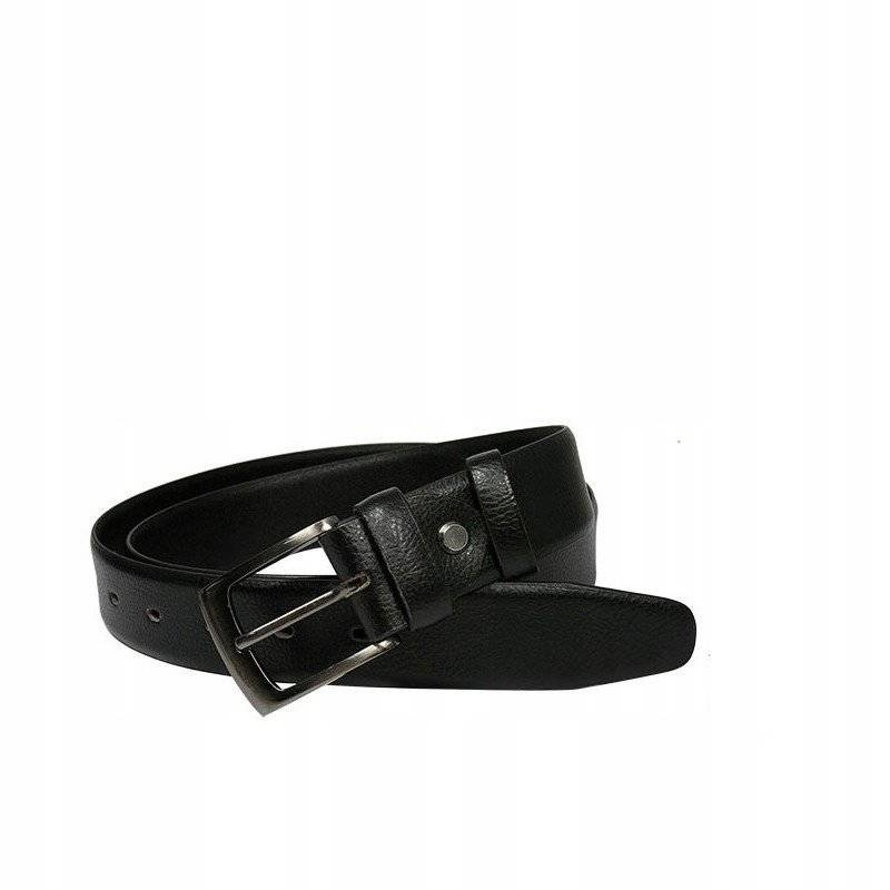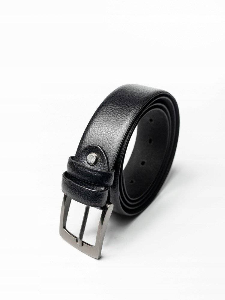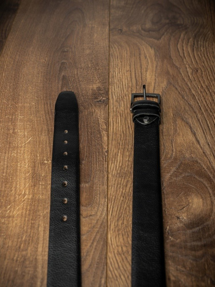 Pasek wykonany z wysokiej jakości skóry naturalnej w kolorze czarnym, z klasyczną prostą metalową klamrą.