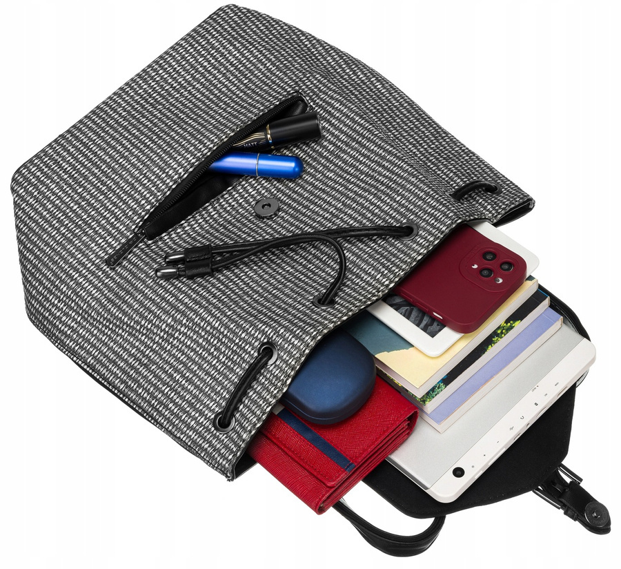 Duża ilość miejsca umożliwi organizację i bezpieczne przechowywanie potrzebnych przedmiotów. Plecak bez problemu pomieści portfel, telefon, książki czy mniejszego tableta.