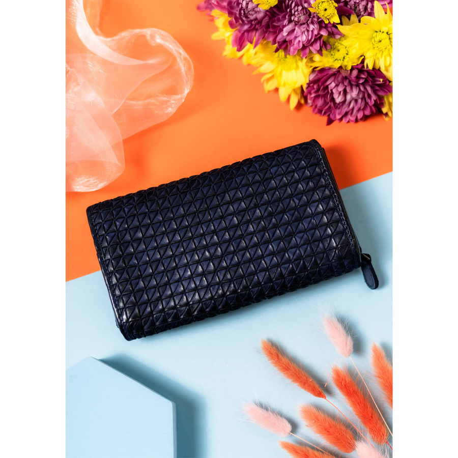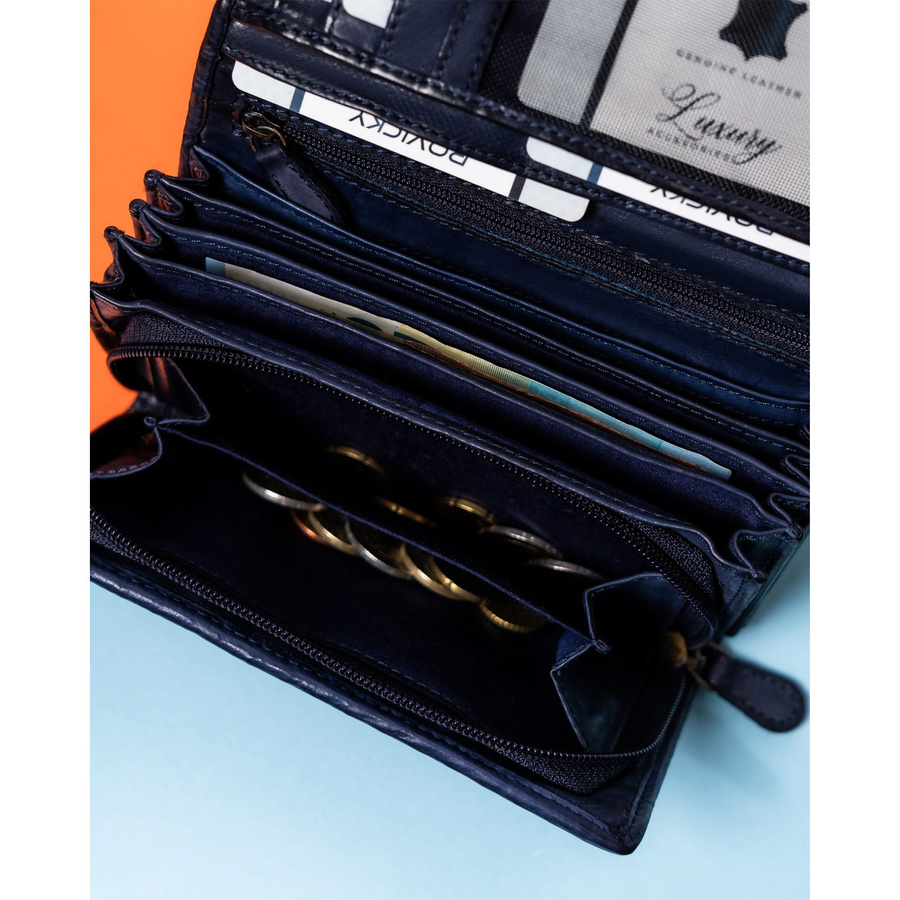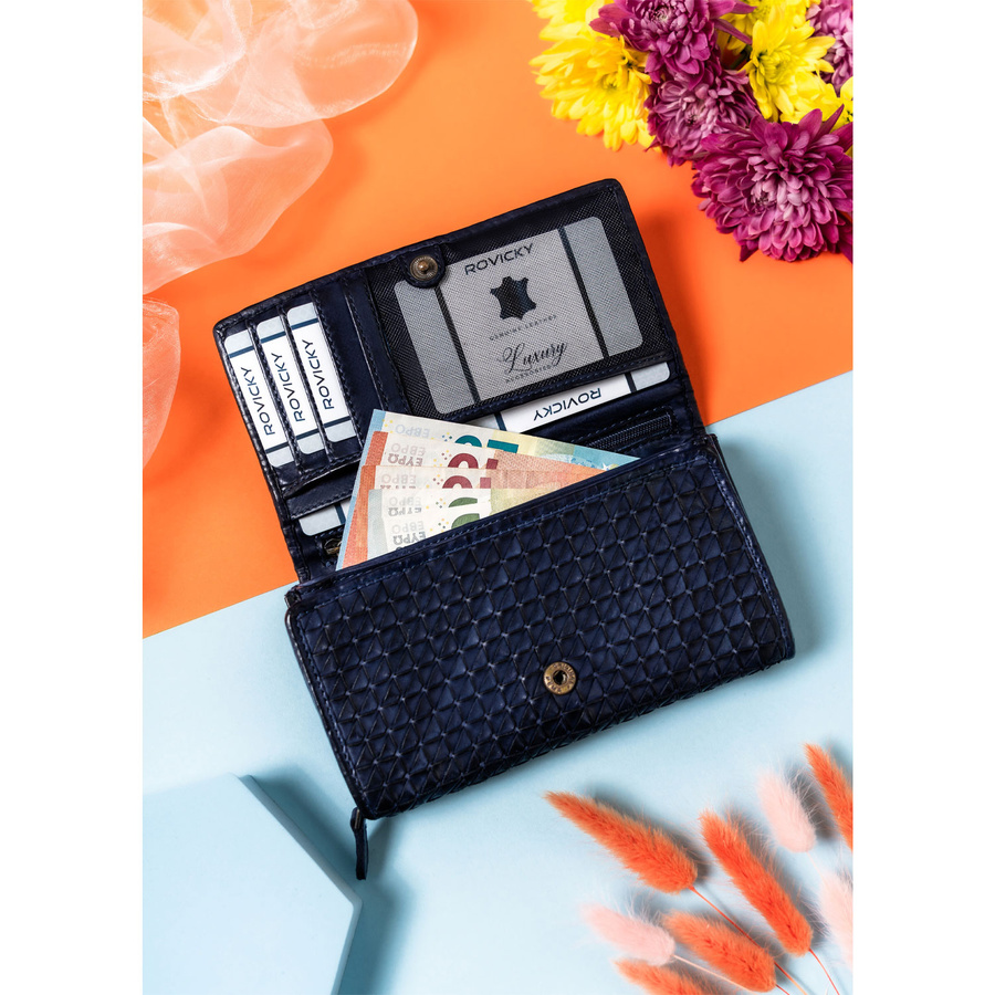 Elegancki portfel damski granatowy ze skóry naturalnej – Rovicky