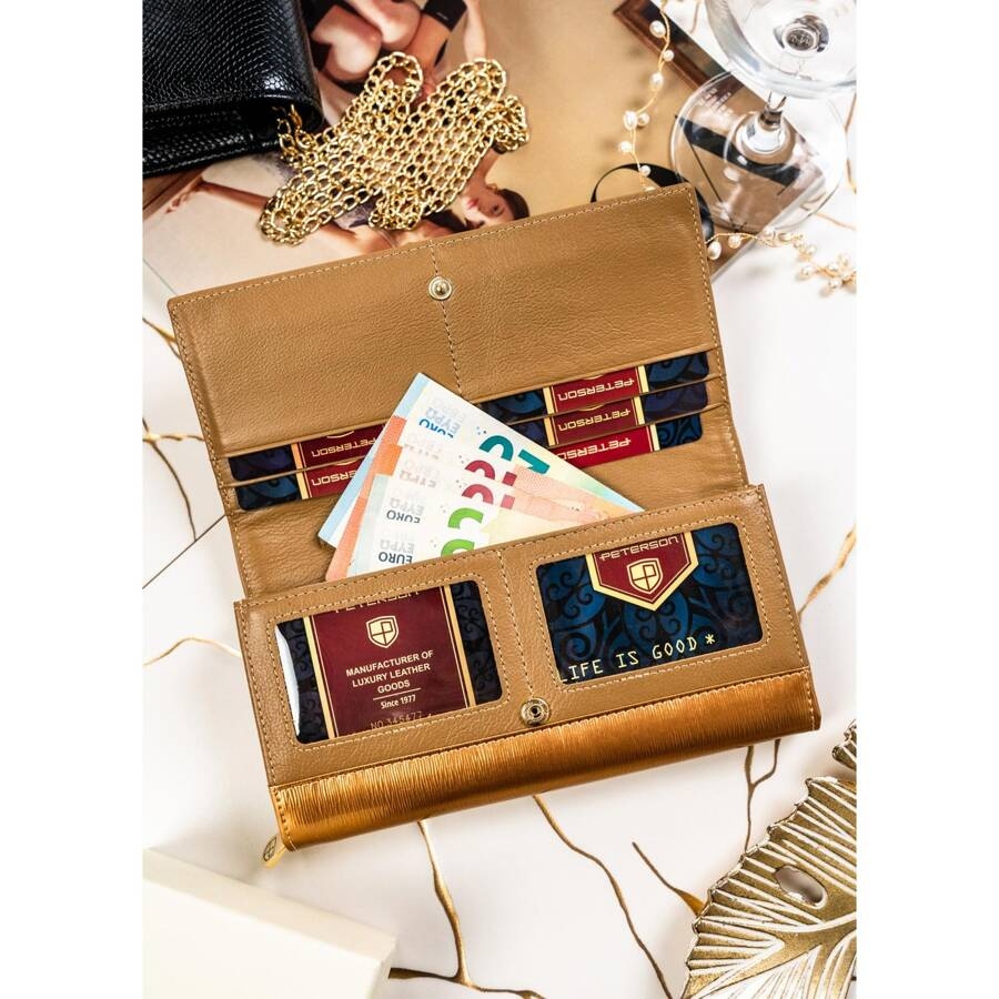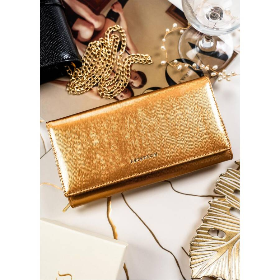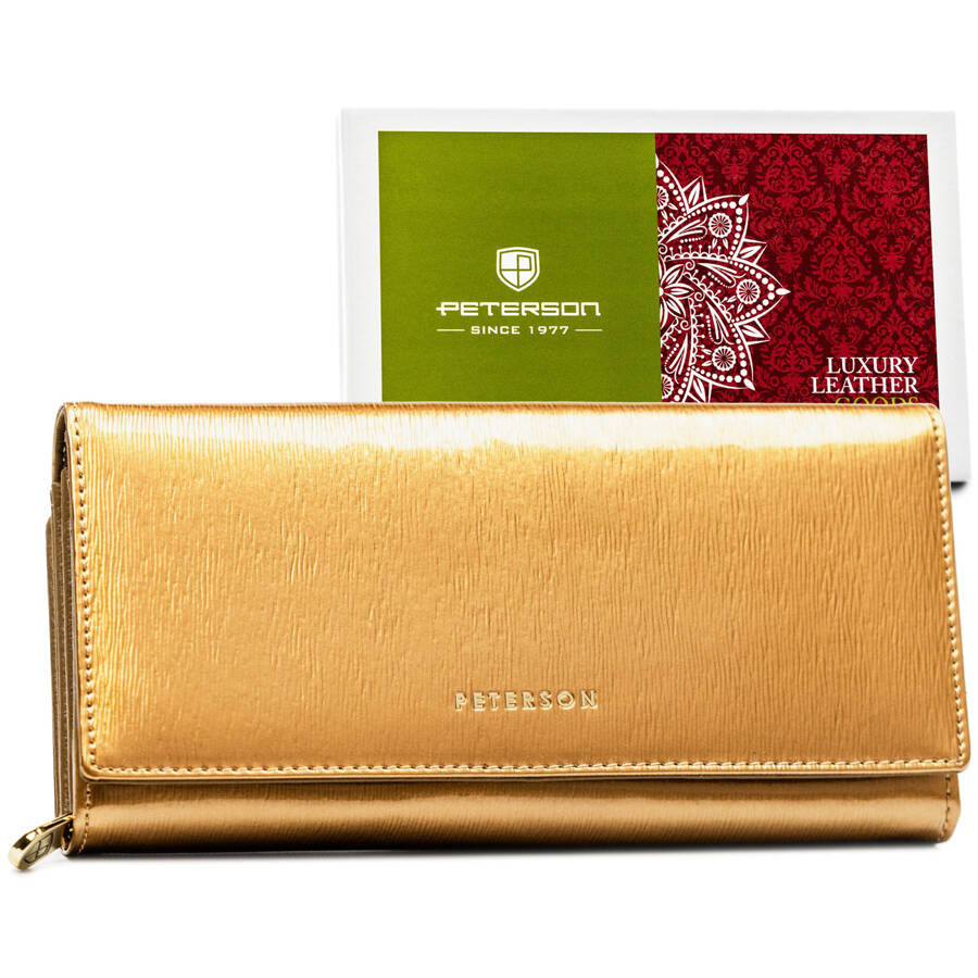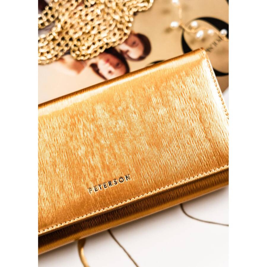 Elegancki portfel damski w kolorze złota z lakierowanej skóry – Peterson