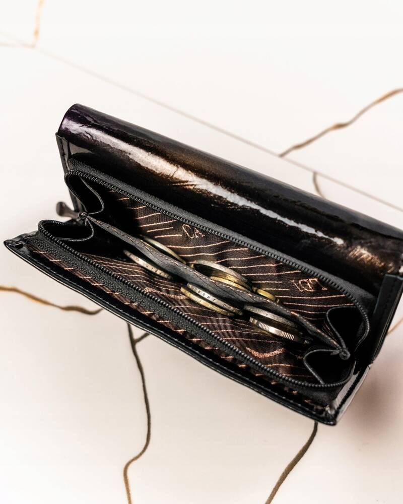 - banknoty znajdą swoje miejsce w 2 przegródkach. Jedna z nich jest otwarta, druga zapinana na suwak.