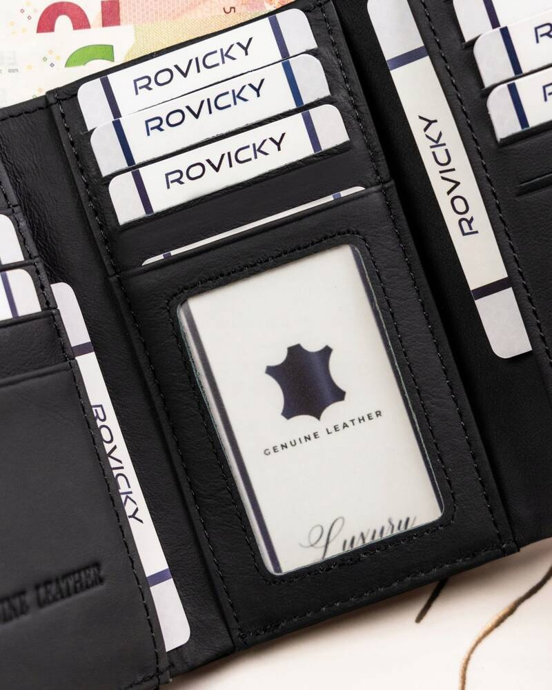 Do portfela bez trudu zmieścisz dowód rejestracyjny w przegrodzie na banknoty. Przegródki na karty i dokumenty zabezpieczono logowaną podszewką. Pozwala to uniknąć otarć na skórze, podczas wkładania i wyjmowania kart.