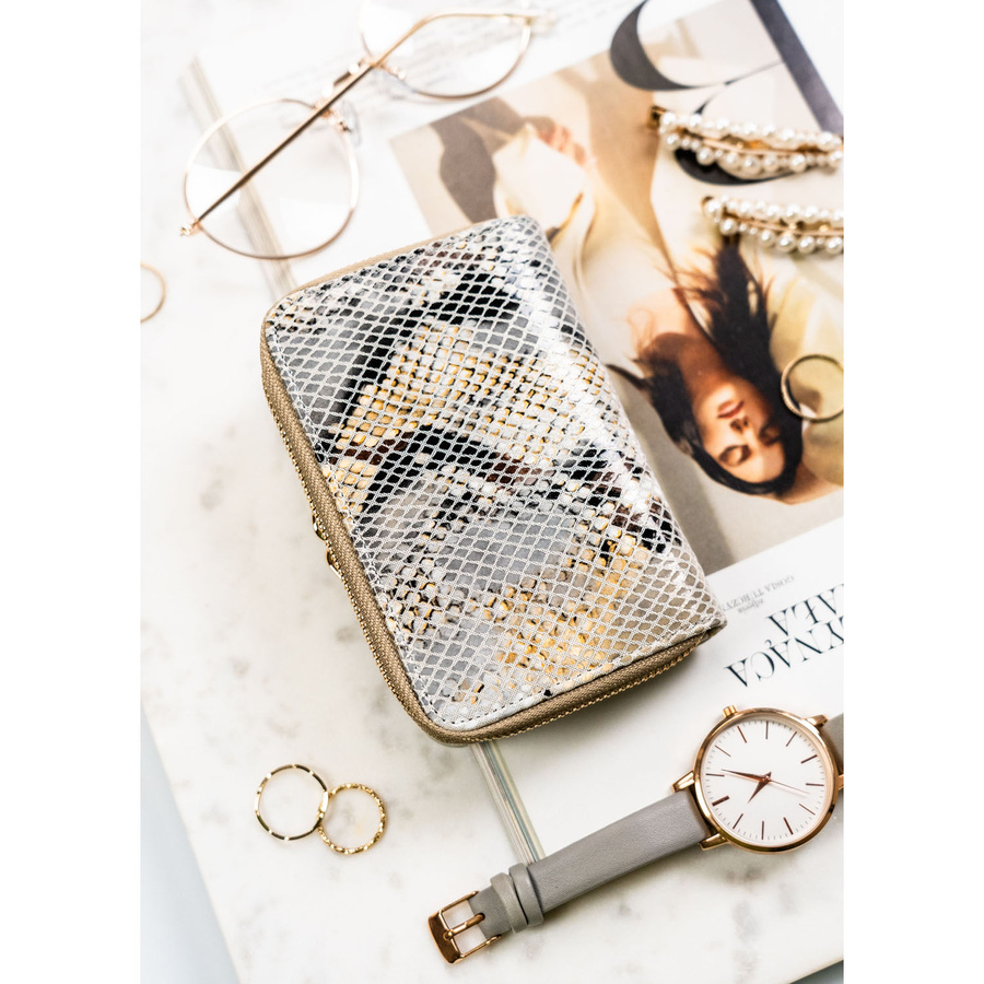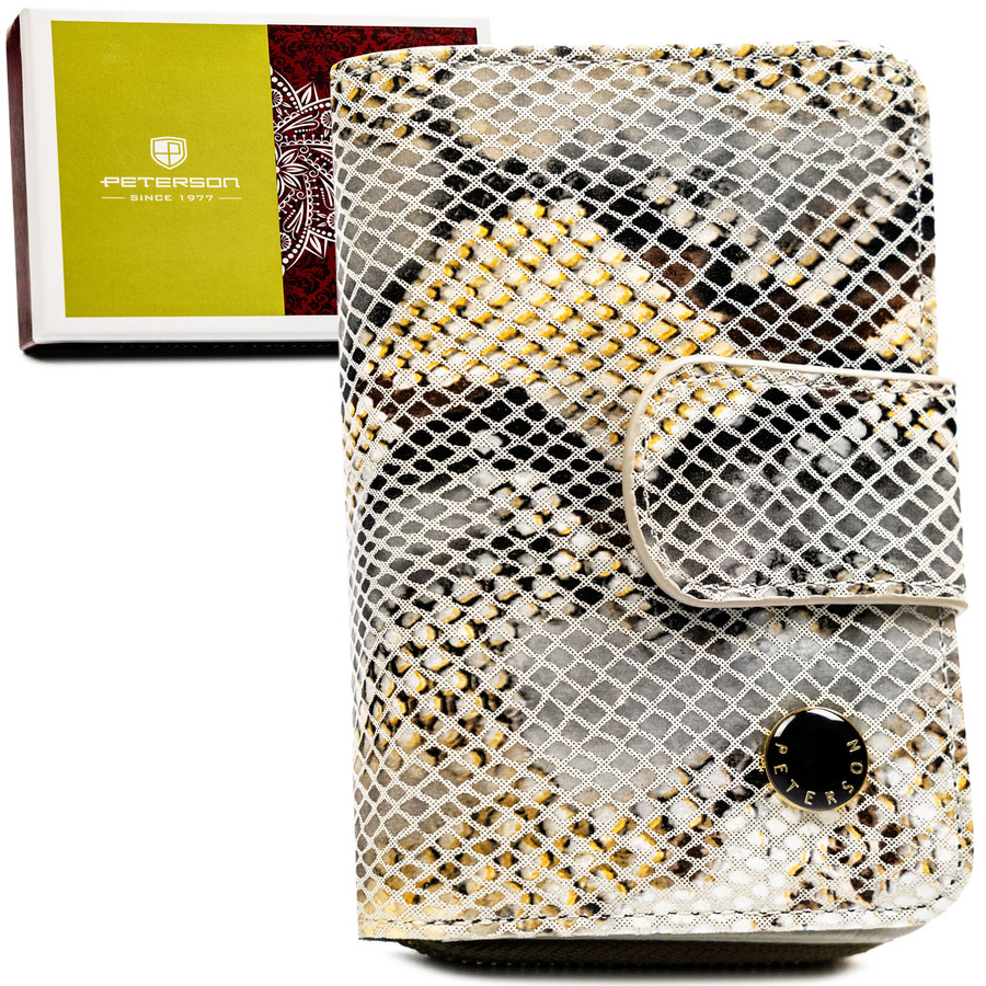 Elegancki, średni portfel damski ze skóry naturalnej wyposażony w system RFID ze wzorem skóry węża – Peterson