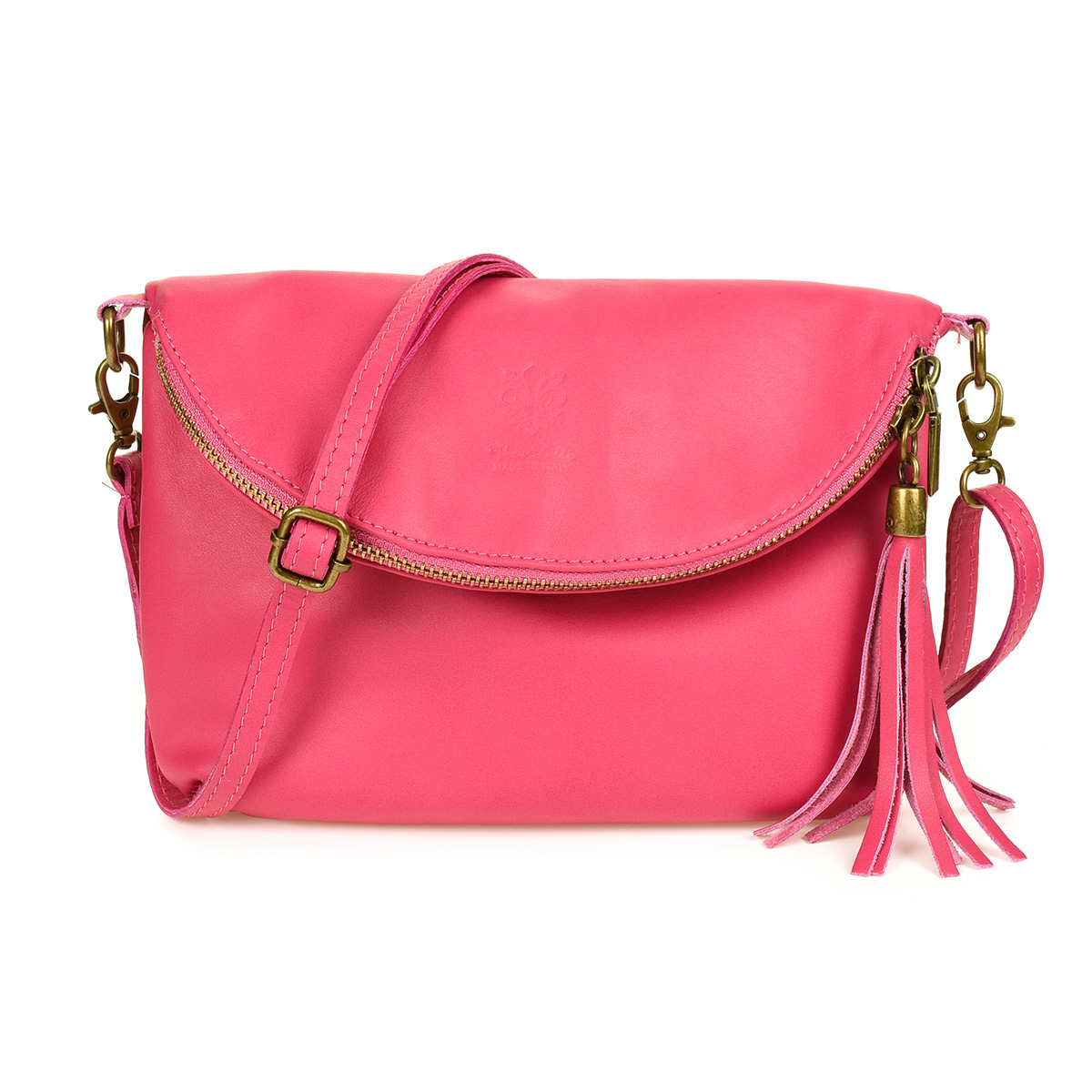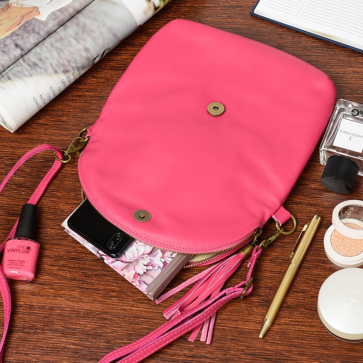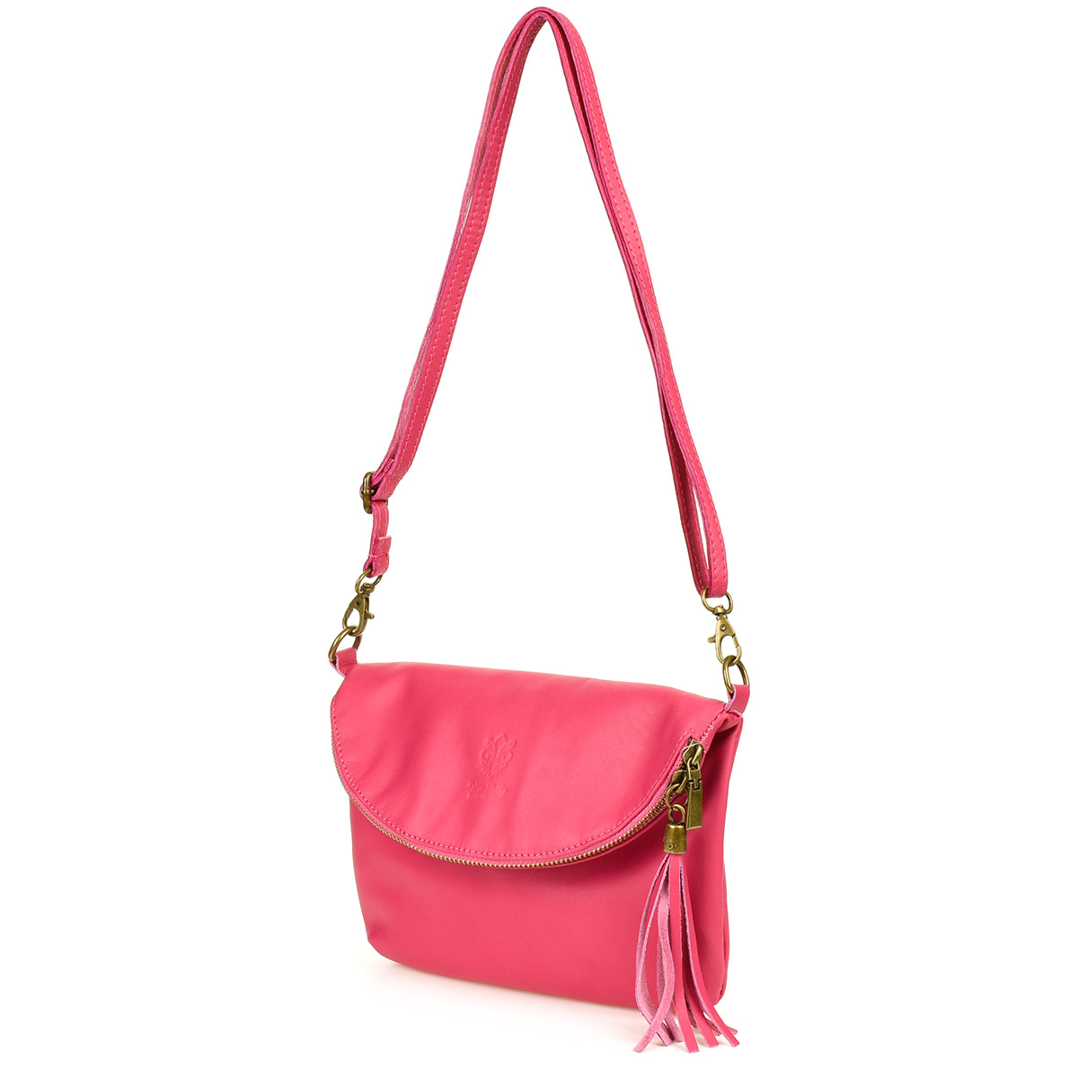 Fuksjowa torebka Damska Skóra Naturalna Listonoszka Klapa B75