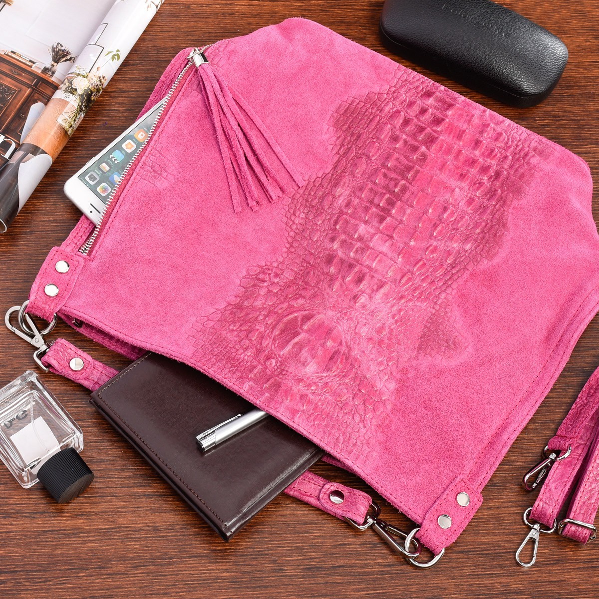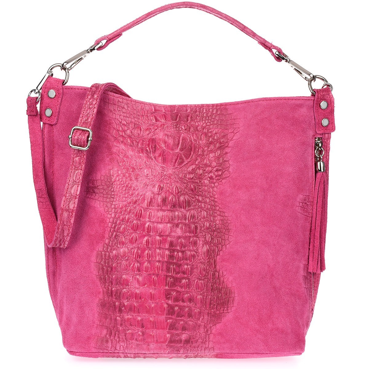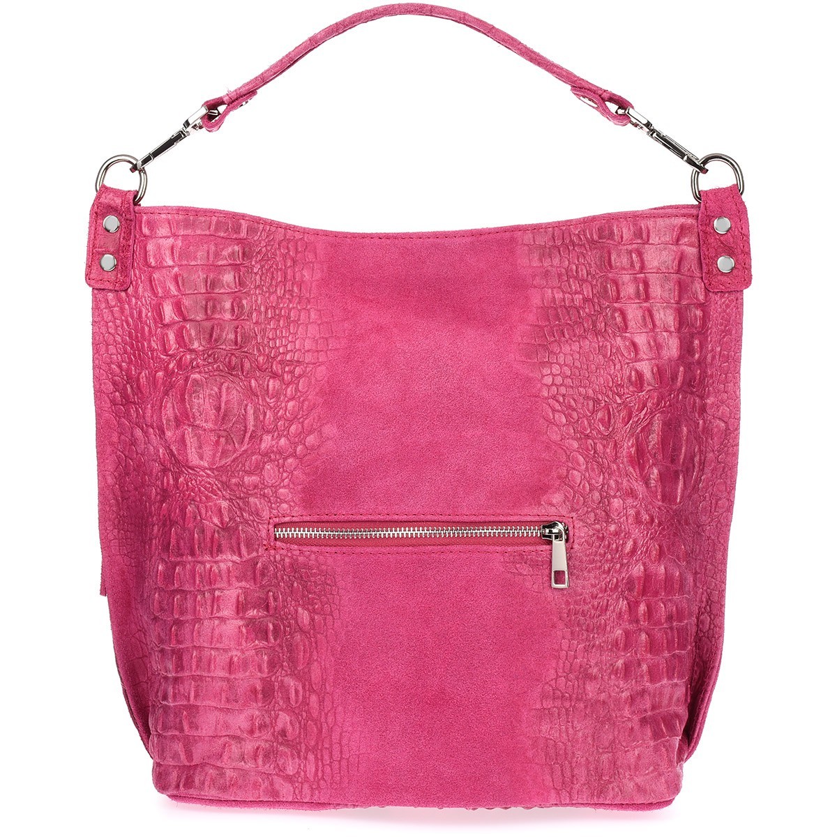 Fuksjowa torebka skórzana zamszowa shopper W10
