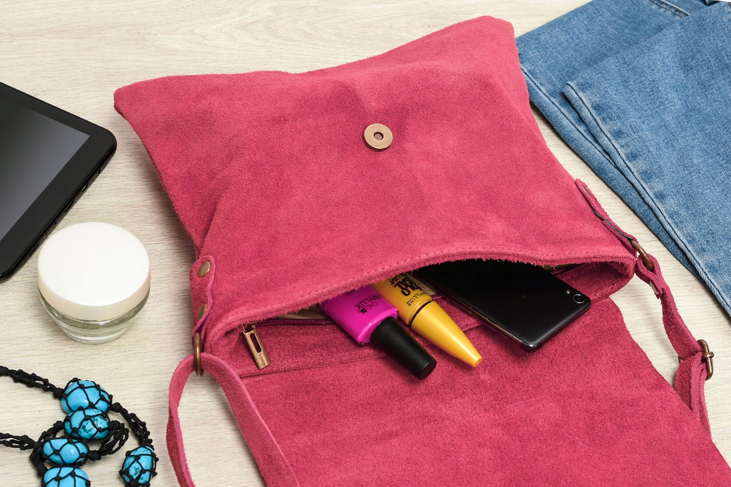 Listonoszka wykonana jest z wyselekcjonowanej naturalnej skóry zamszowej, model MUST-HAVE  każdej kobiety.