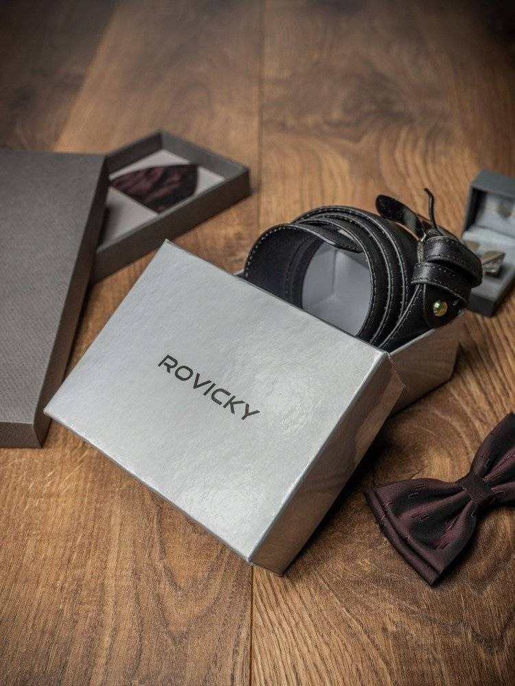 Gładki pasek męski z klasyczną klamrą, skóra naturalna – Rovicky