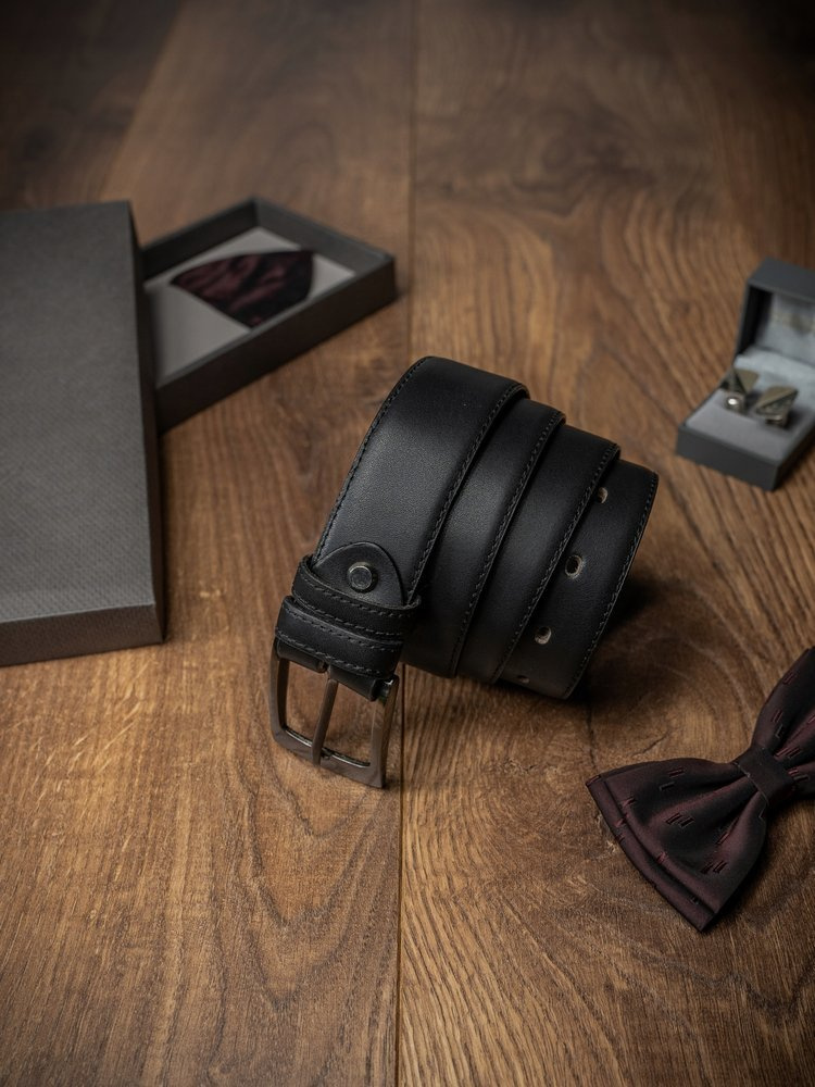 Nowoczesny, oryginalny pasek wykonany z wysokiej jakości skóry naturalnej w kolorze czarnym, z klasyczną prostą metalową klamrą. Ciekawy styl urozmaici każdą stylizację.