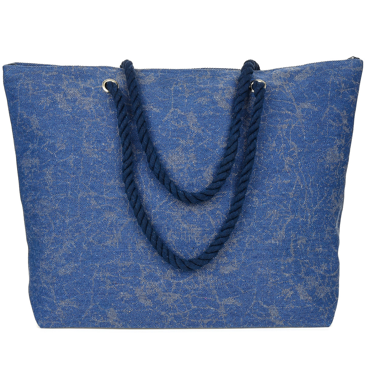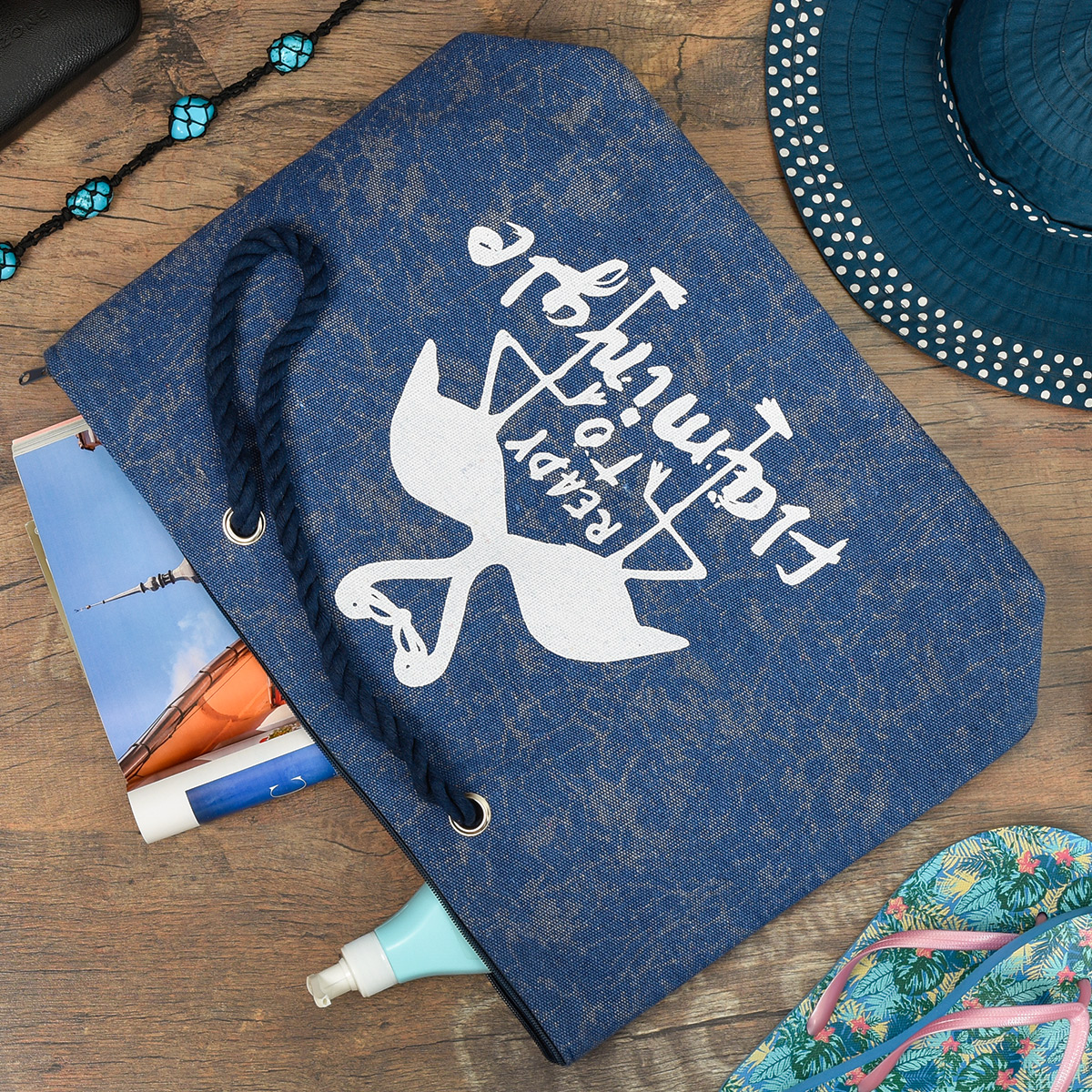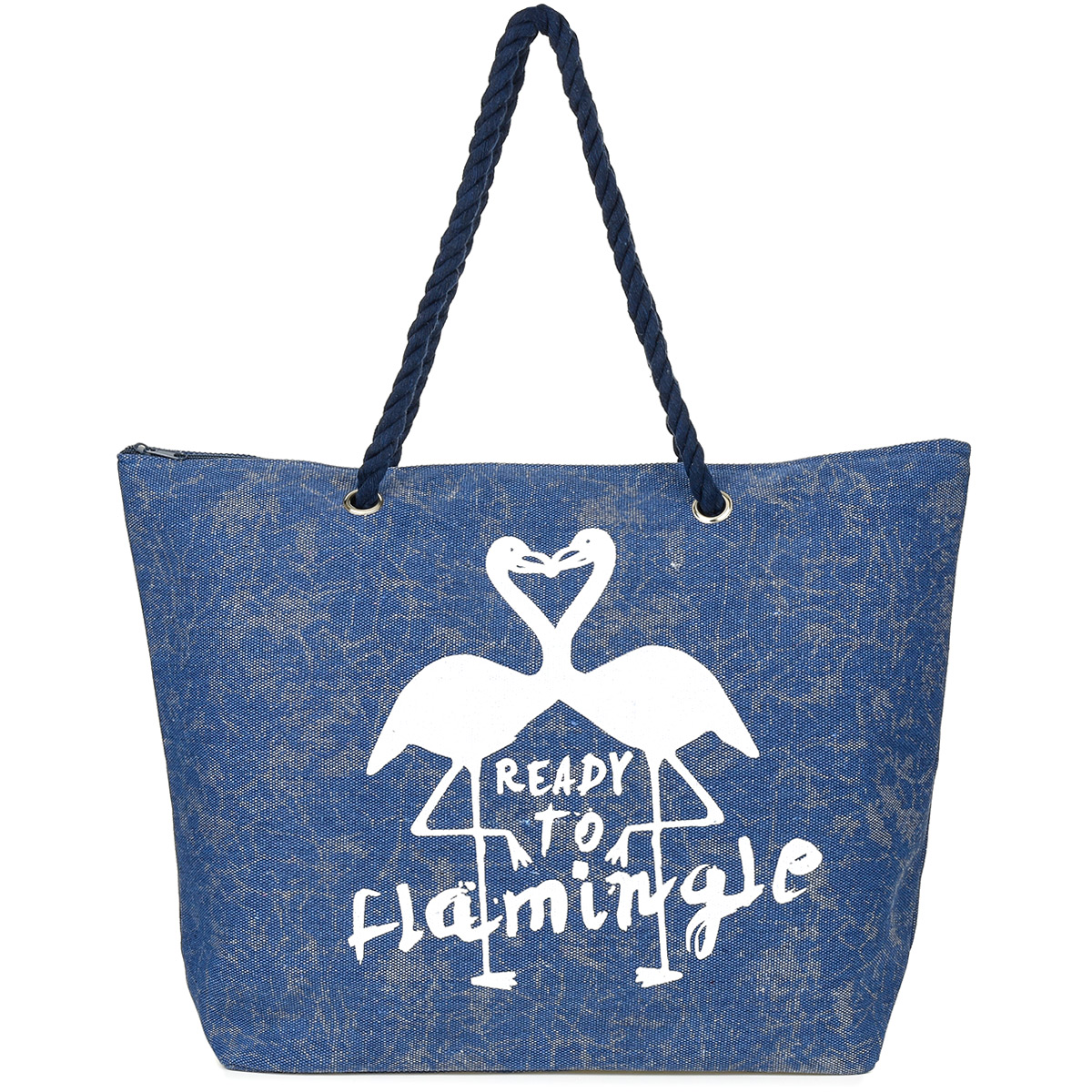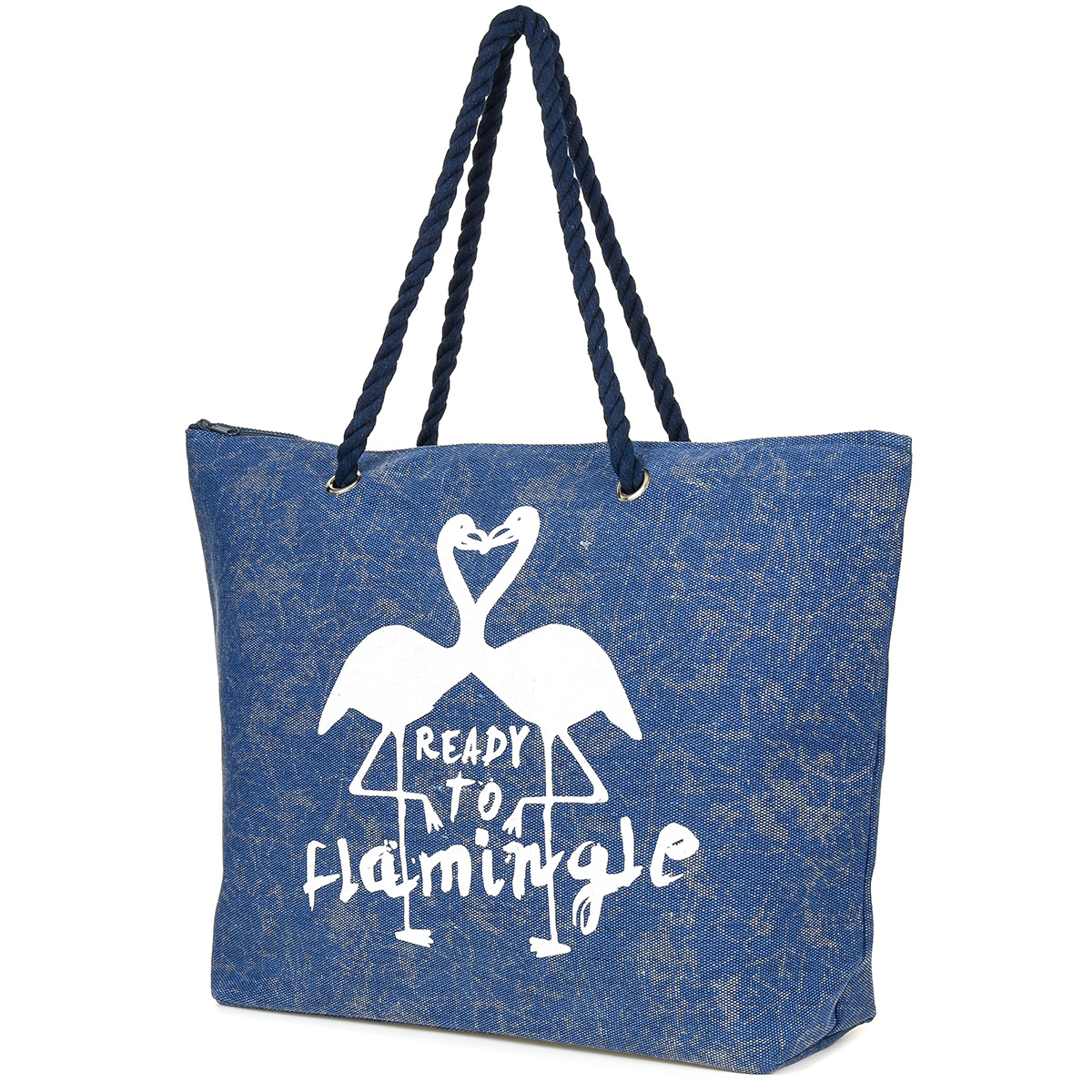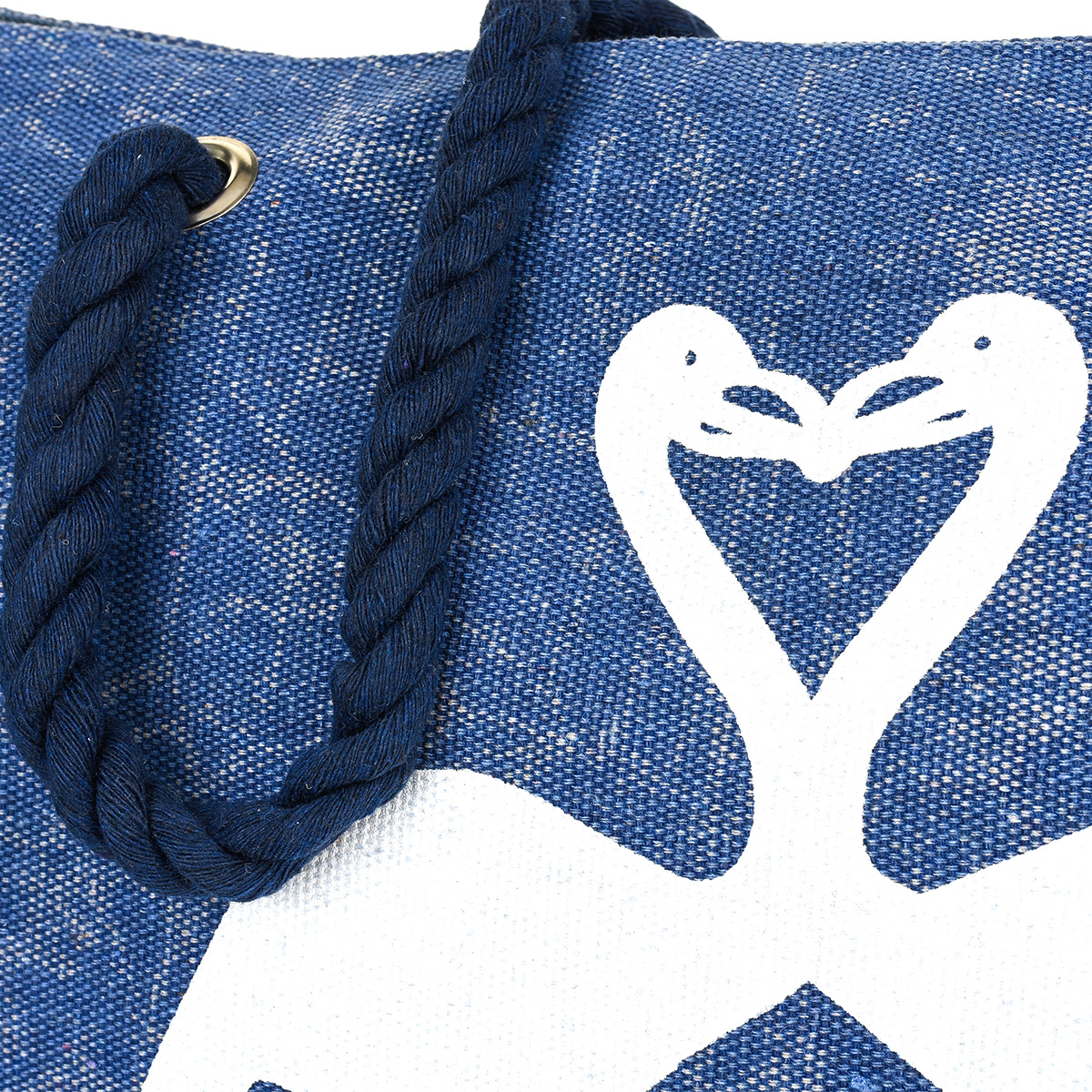 Granatowa torba plażowa, płócienna torba na plażę, torba plażowa z flamingami Bellugio N95