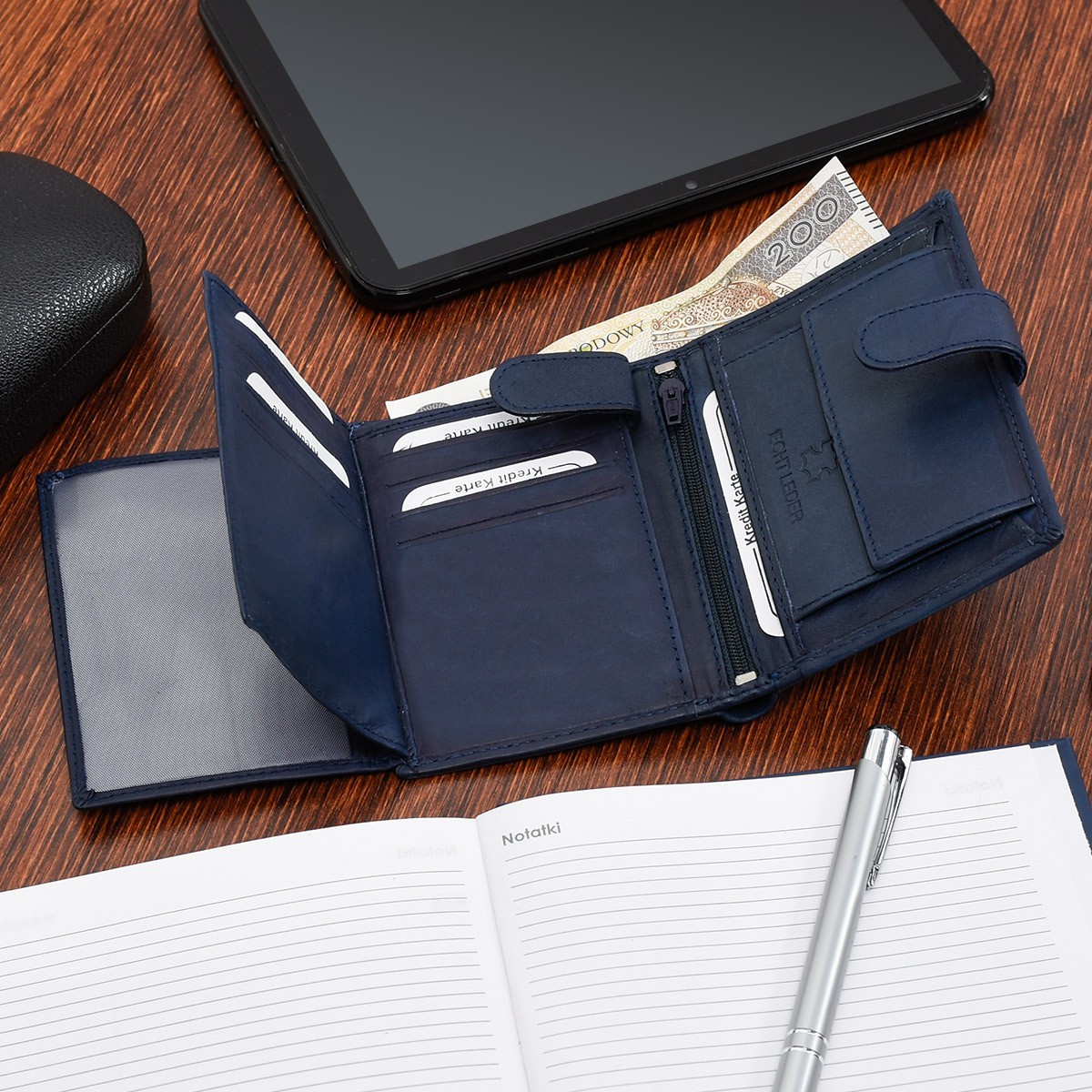 – 3x dodatkowe duże wewnętrzne przegrody na inne karty/dokumenty