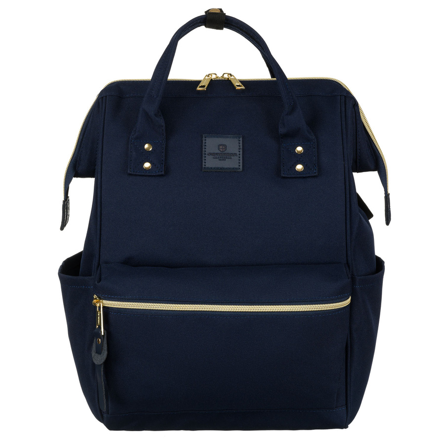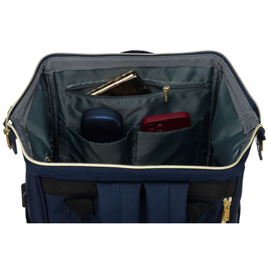 Granatowy plecak damski z poliestru z miejscem na laptopa, zawieszony na regulowanych szelkach – Peterson