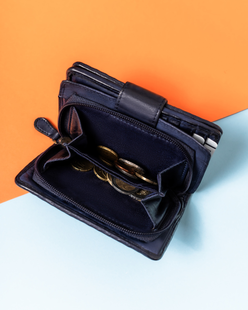 - Podwójna kieszeń na bilon – Przestronne przegrody, zamykane na solidny zamek błyskawiczny, pomieszczą monety w wygodny i bezpieczny sposób.