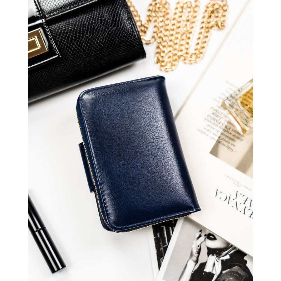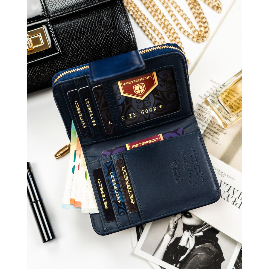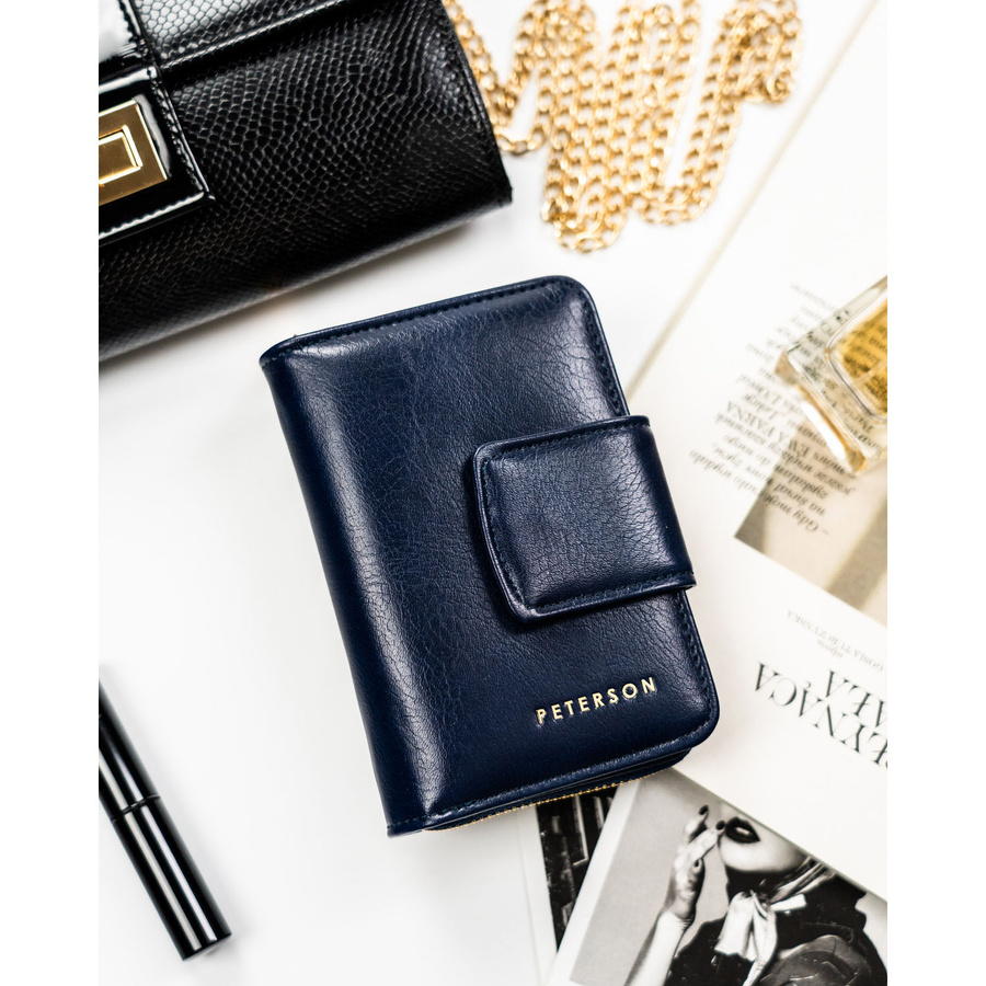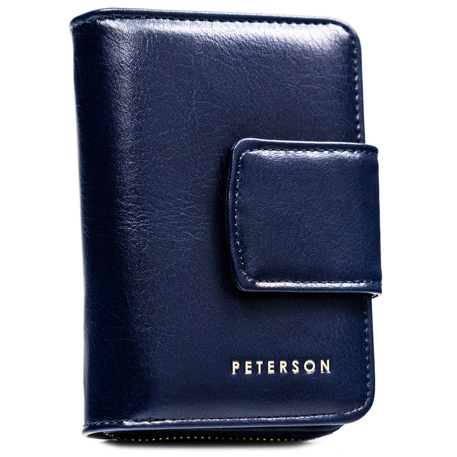 Granatowy portfel damski ze skóry ekologicznej z systemem RFID – Peterson
