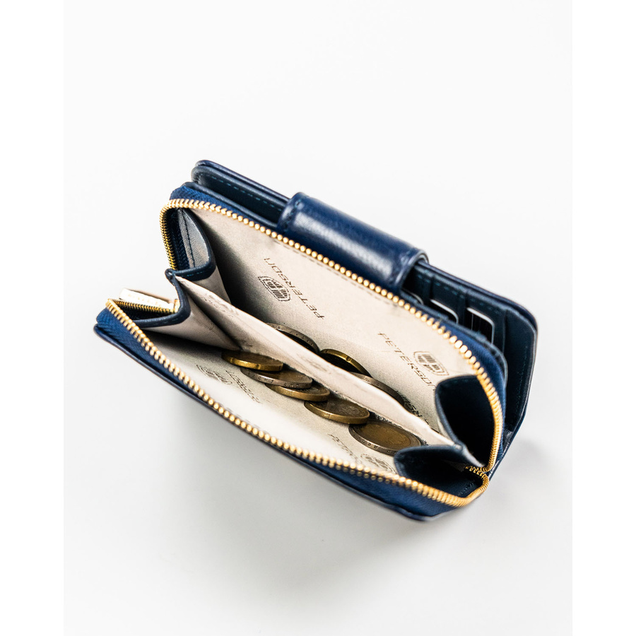 - 1 podwójnej kieszeni zamykanej na suwak. Kieszeń ta jest oddzielną sekcją portfela.