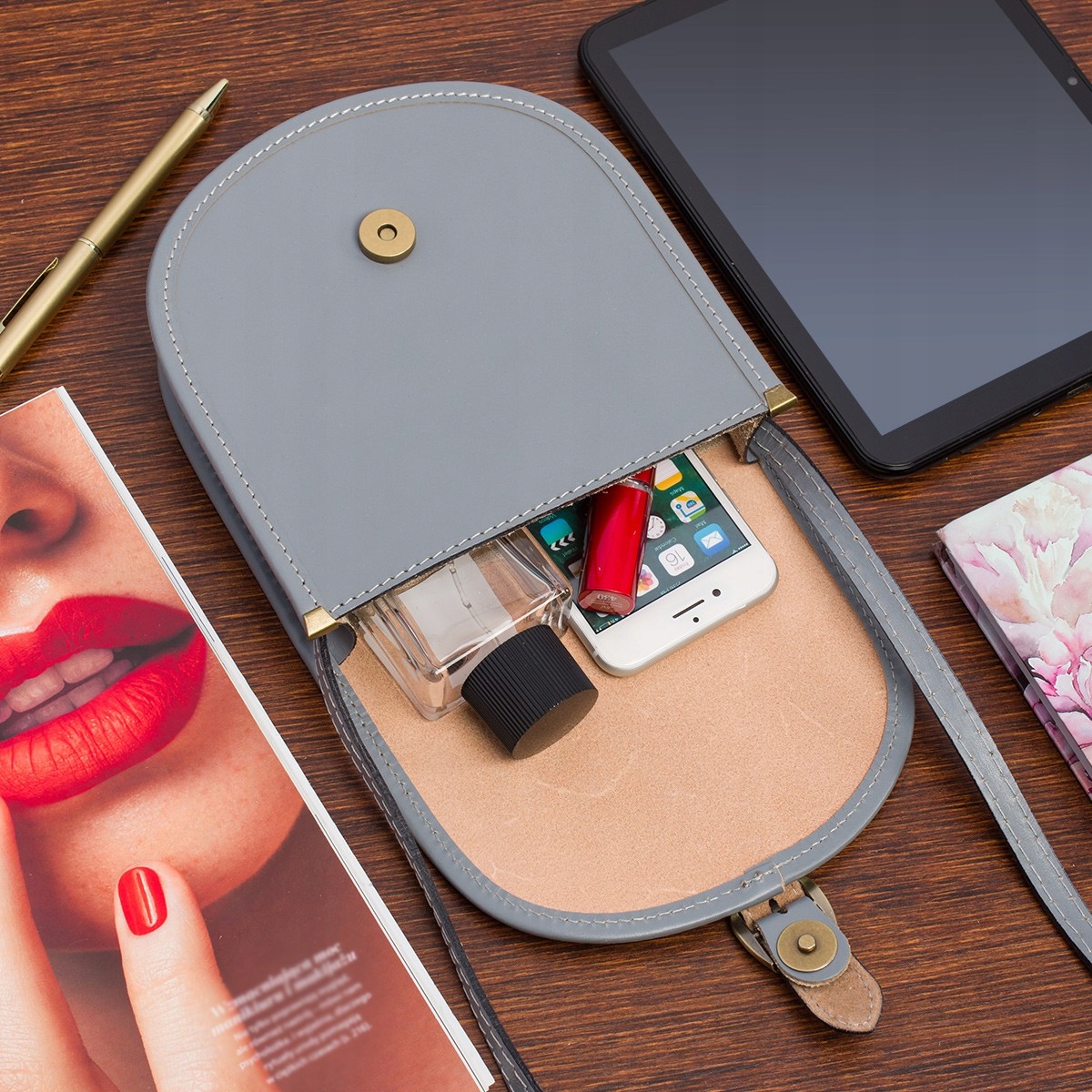Jasno szara Beltimore Damska Skórzana Mała Torebka Listonoszka podkówka