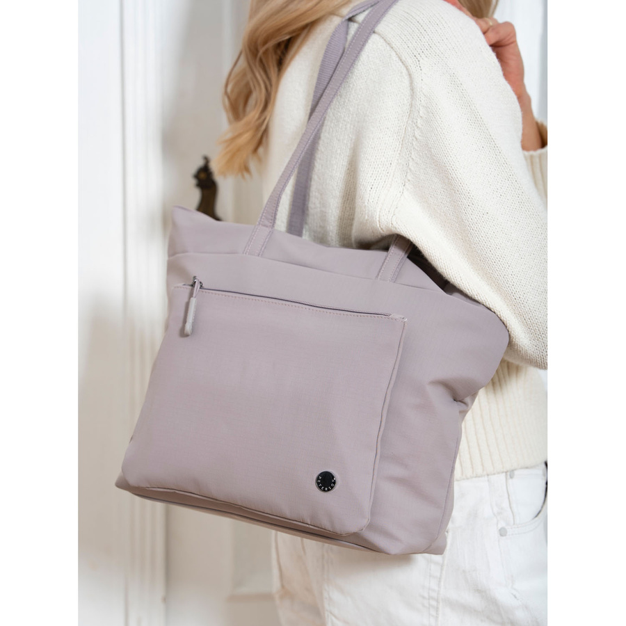 Jednokomorowa shopperka damska z poliestru w kolorze lila z kieszenią na froncie – Peterson