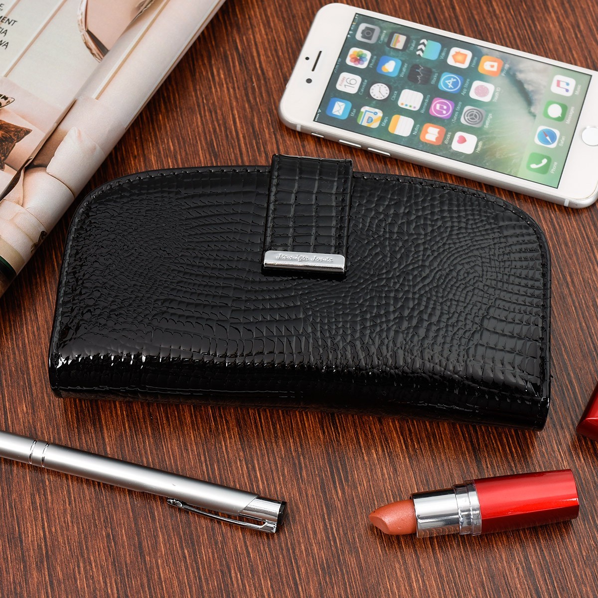 4f95a53ed6cd6243607ba0438318765cJennifer Jones portfel Skórzany damski Duży Lakierowany czarny 825