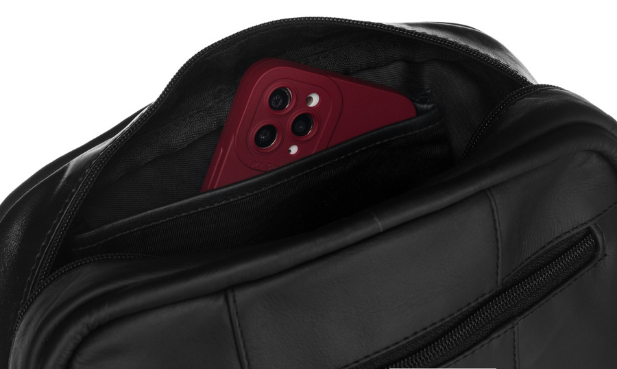 Tył listonoszki zawiera kolejną, zamykaną bezpiecznym suwakiem kieszeń.