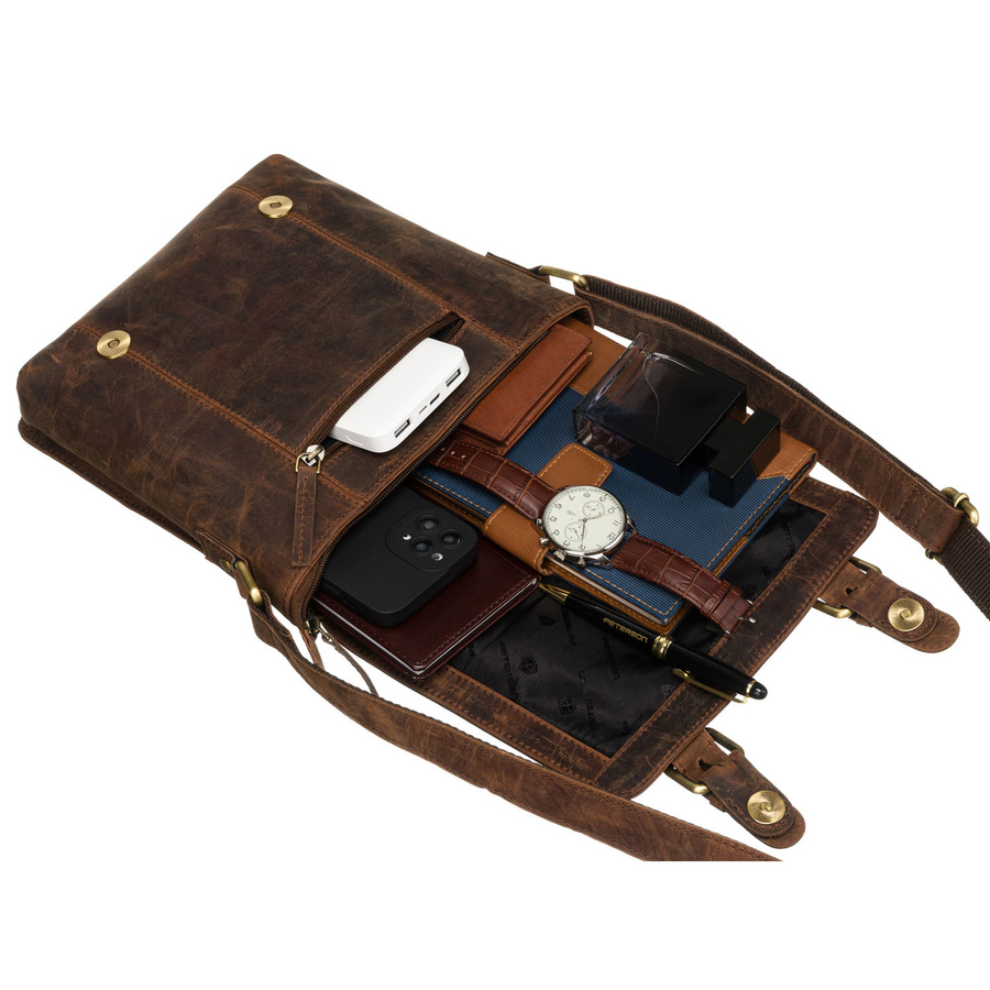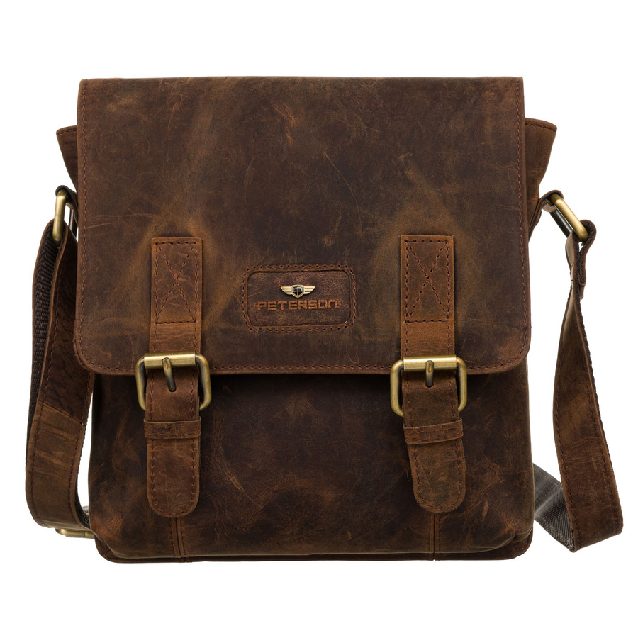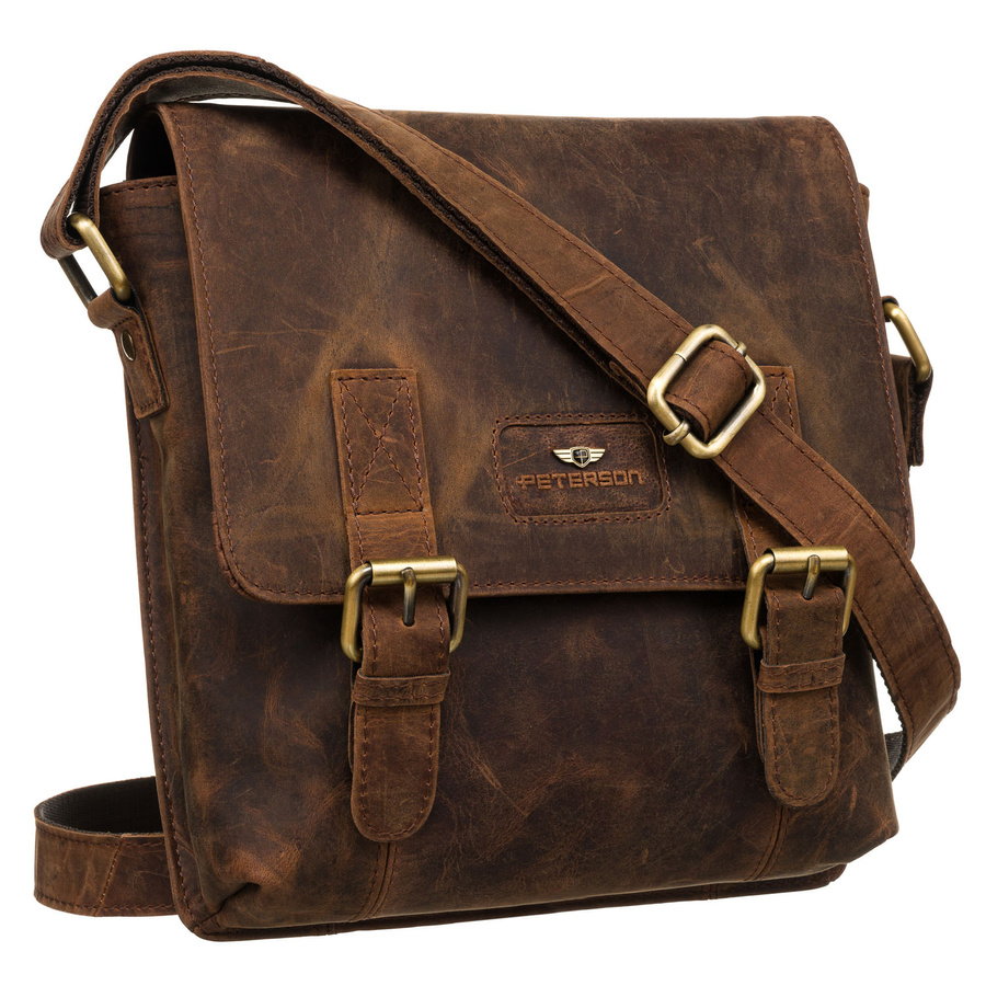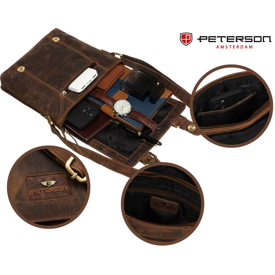 Klasyczna listonoszka męska ze skóry naturalnej w brązowym kolorze – Peterson