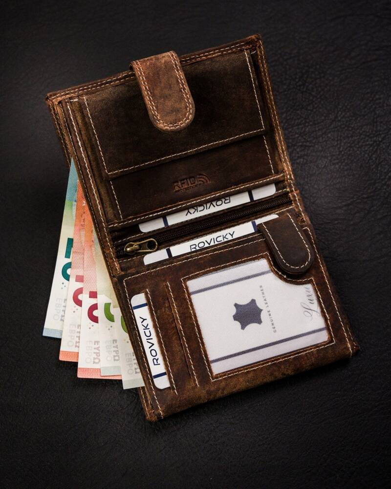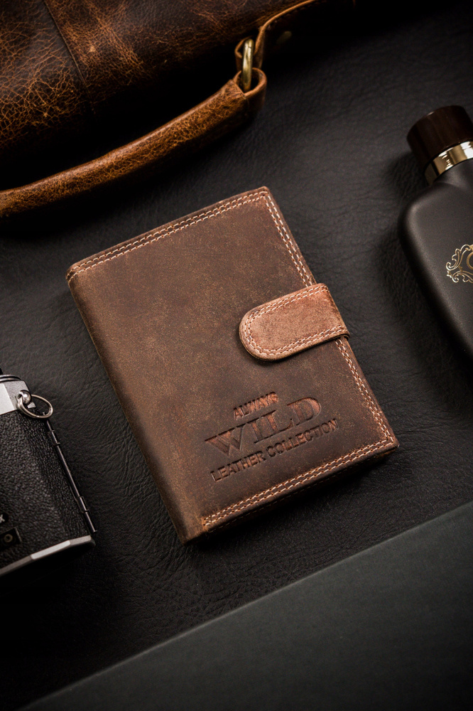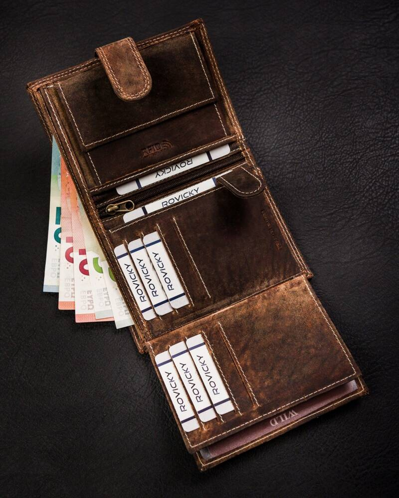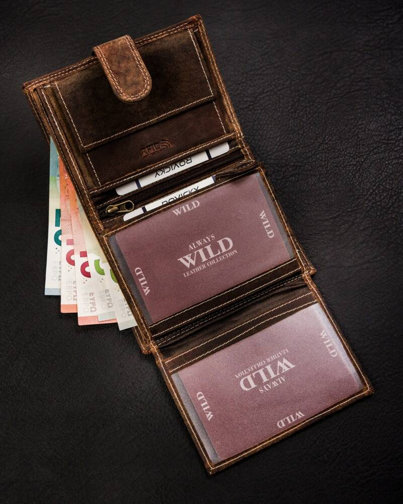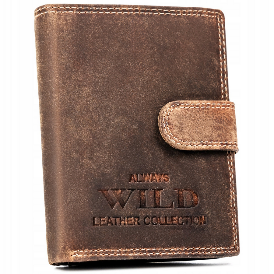 Klasyczny, duży portfel męski ze skóry naturalnej na zatrzask – Always Wild