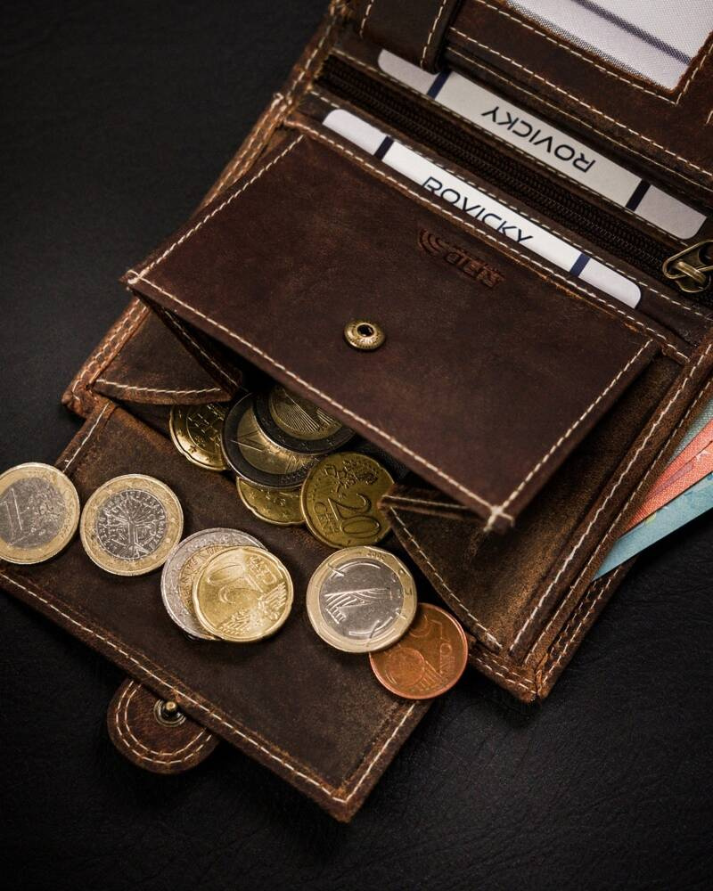 W kieszeniach na banknoty i monety zmieścisz satysfakcjonującą ilość gotówki.