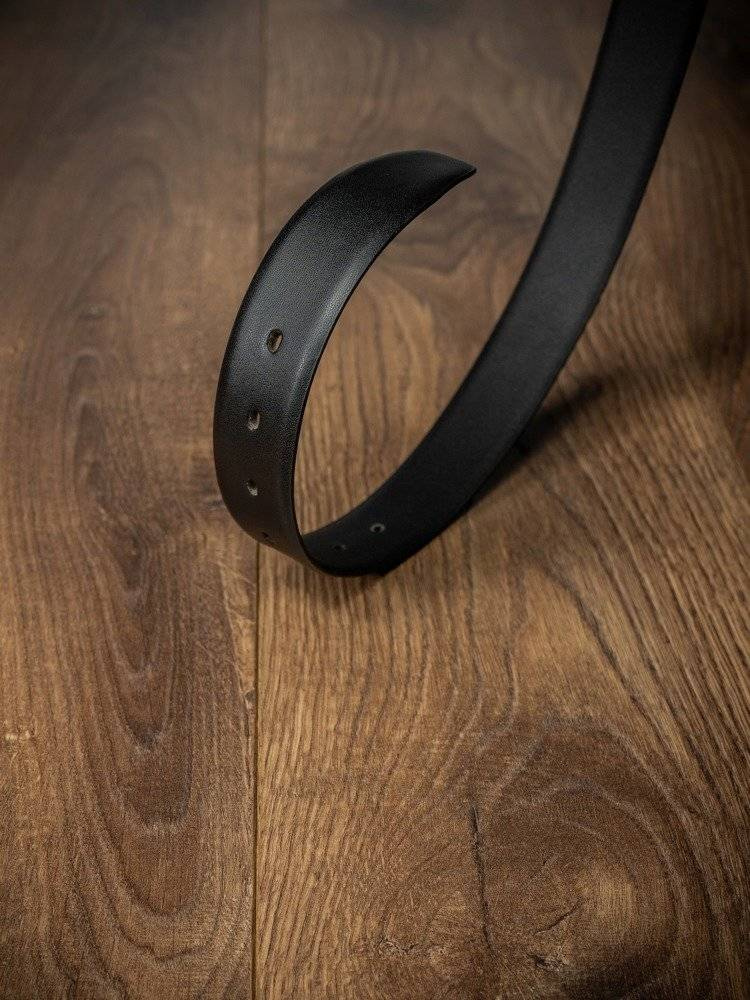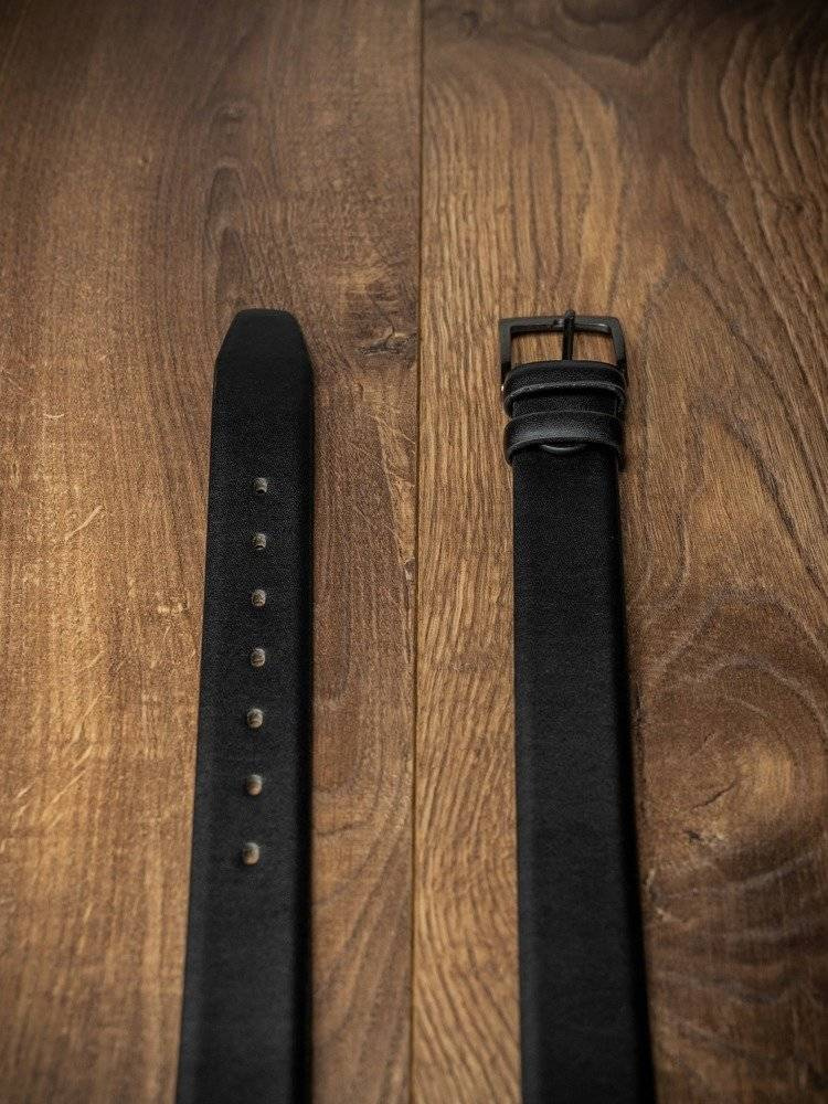 Wykonany z wysokiej jakości skóry naturalnej w kolorze czarnym, z klasyczną prostą metalową klamrą.