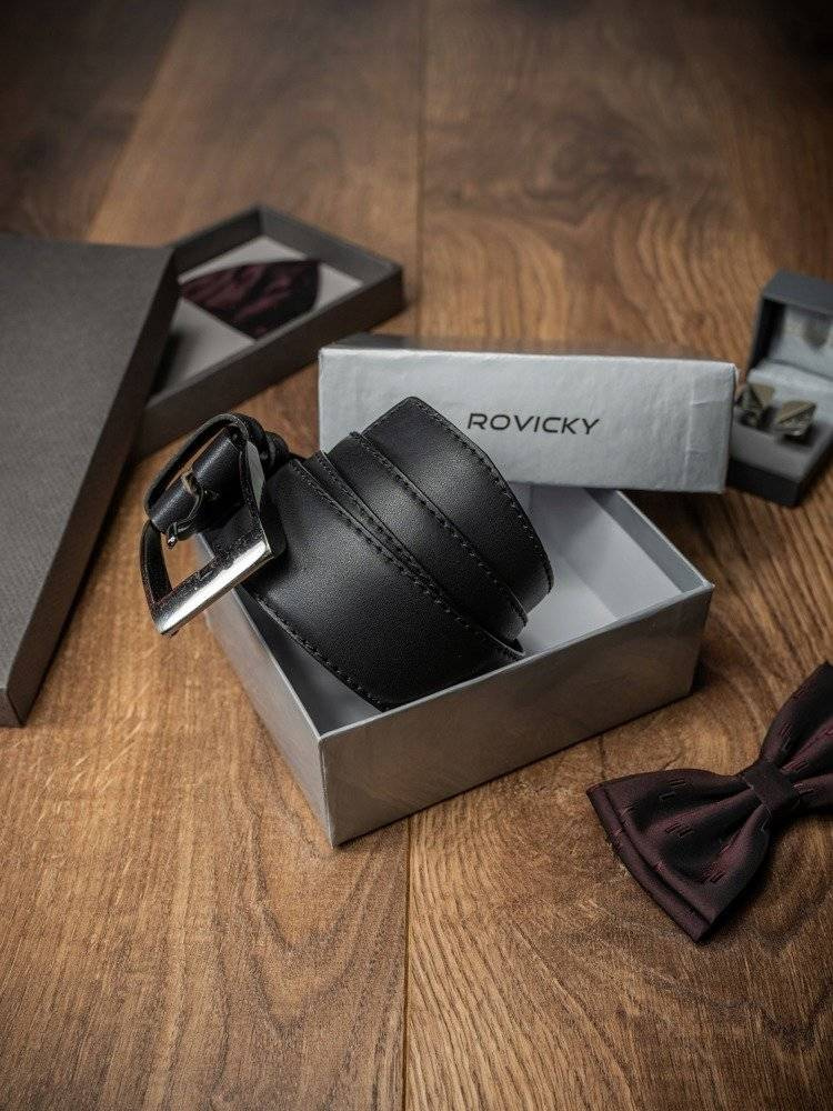 Klasyczny, gładki pasek męski z tradycyjną srebrną klamrą – Rovicky
