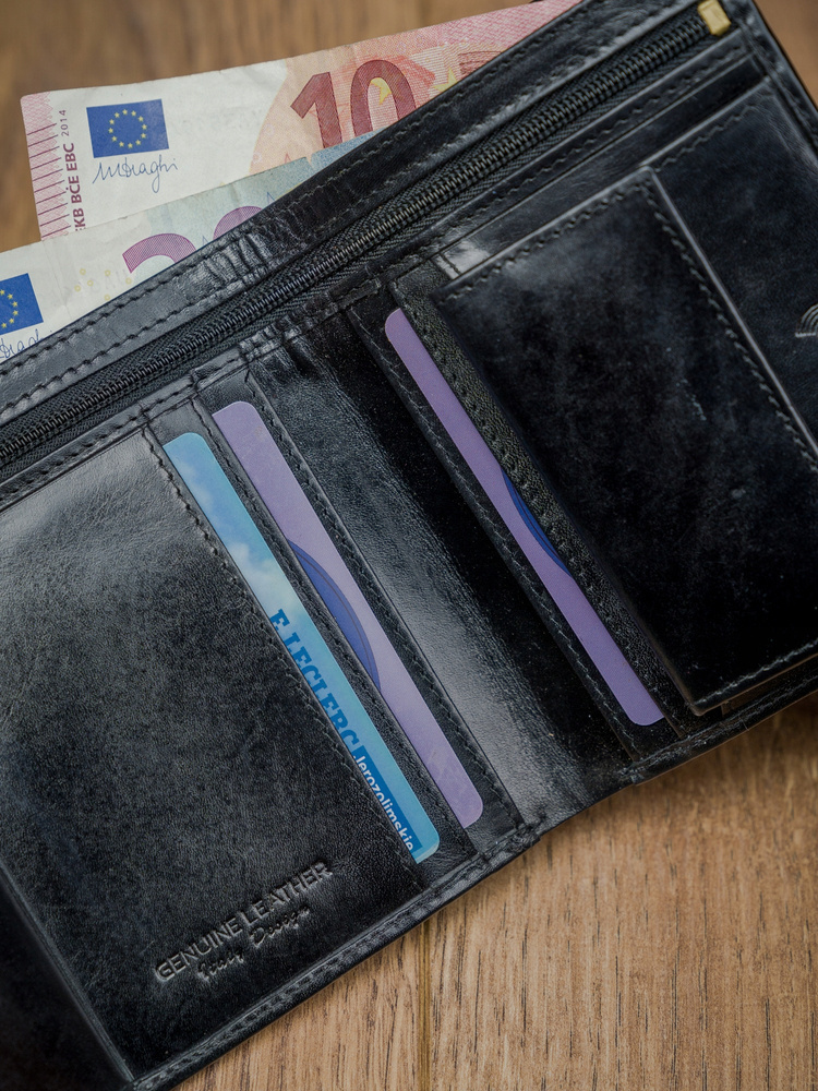 - banknoty schowasz do 2 szerokich kieszeni. Jedna z nich jest zapinana na suwak. Nie musisz martwić się o swoje pieniądze, w tym portfelu będą bezpieczne!