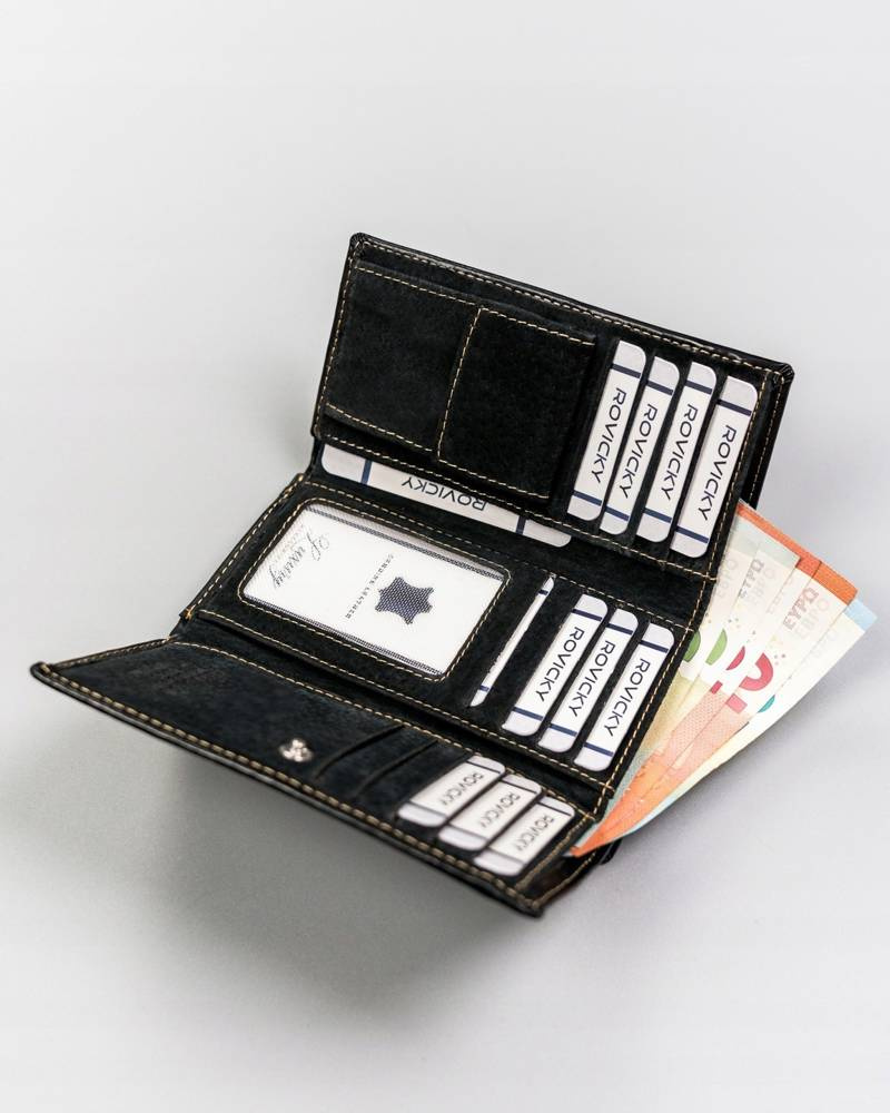 - aż 13 przegródek dedykowanych na karty, wizytówki lub dokumenty w standardowym formacie (jedna z tych przegródek jest transparentna i dedykowana na fotografię);