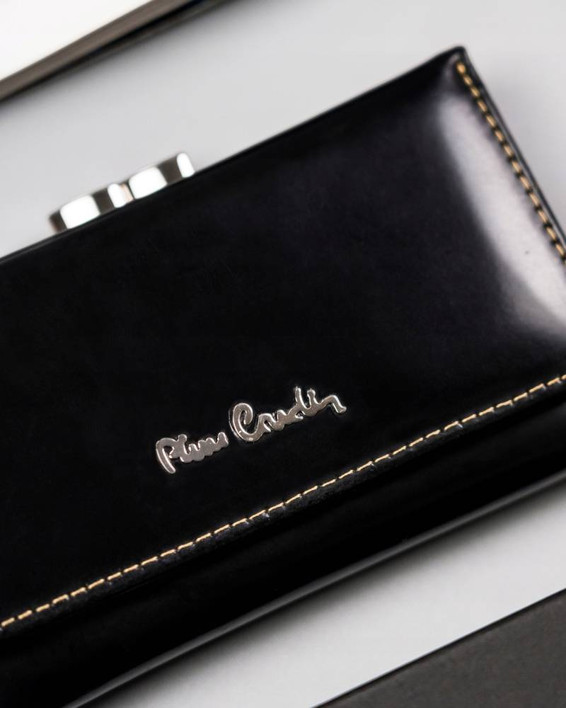 Klasyczny portfel damski ze skóry naturalnej na bigiel i zatrzask – Pierre Cardin