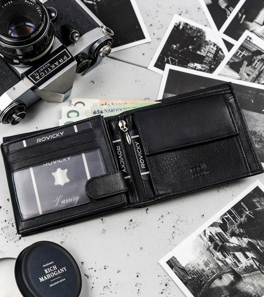 - Starannie wyselekcjonowane materiały | W czasie produkcji zastosowano solidne surowce, które wpływają na wysoką jakość portfela. Decydując się na niego, nie będziesz musiał martwić się zmianą portfela przez kilka lat!