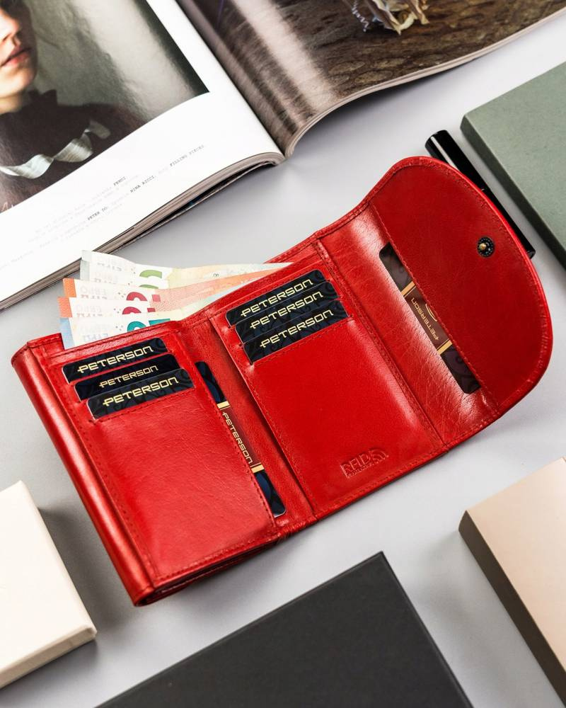 Klasyczny, skórzany portfel damski na zatrzask – Peterson