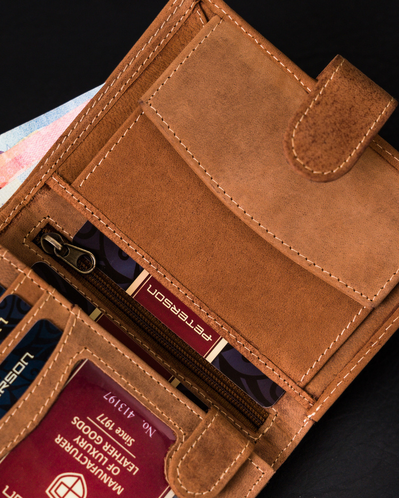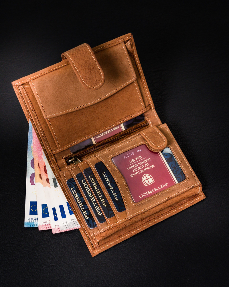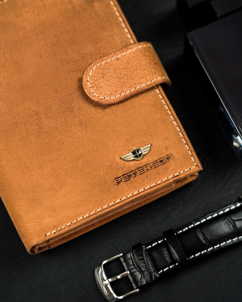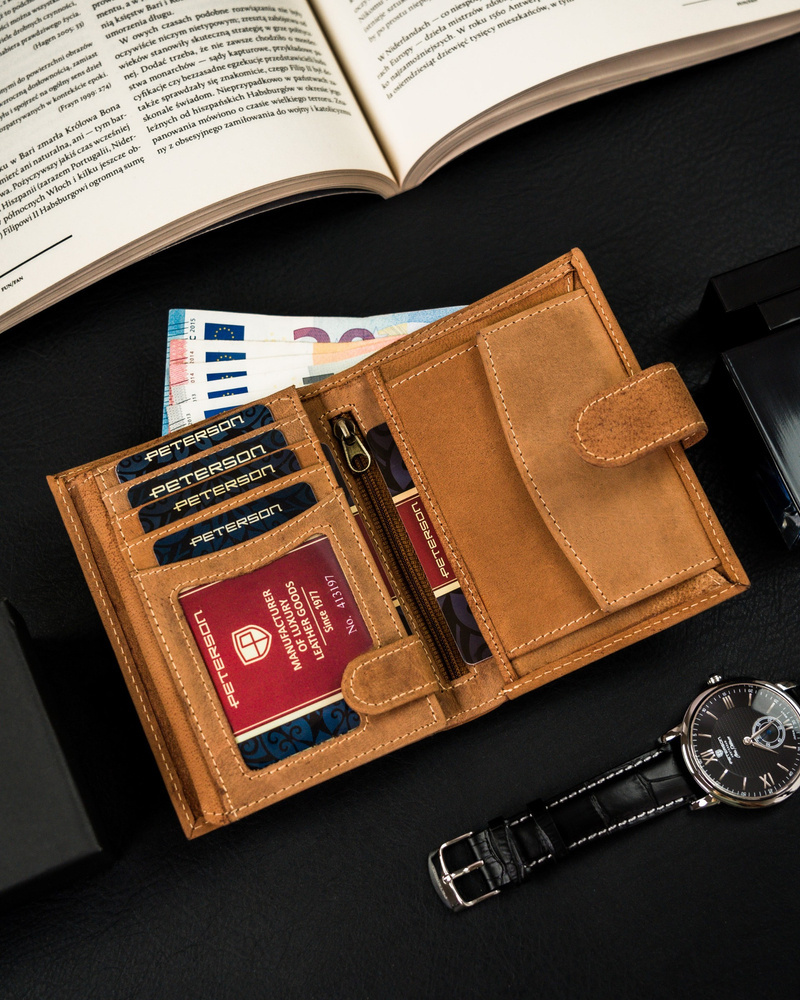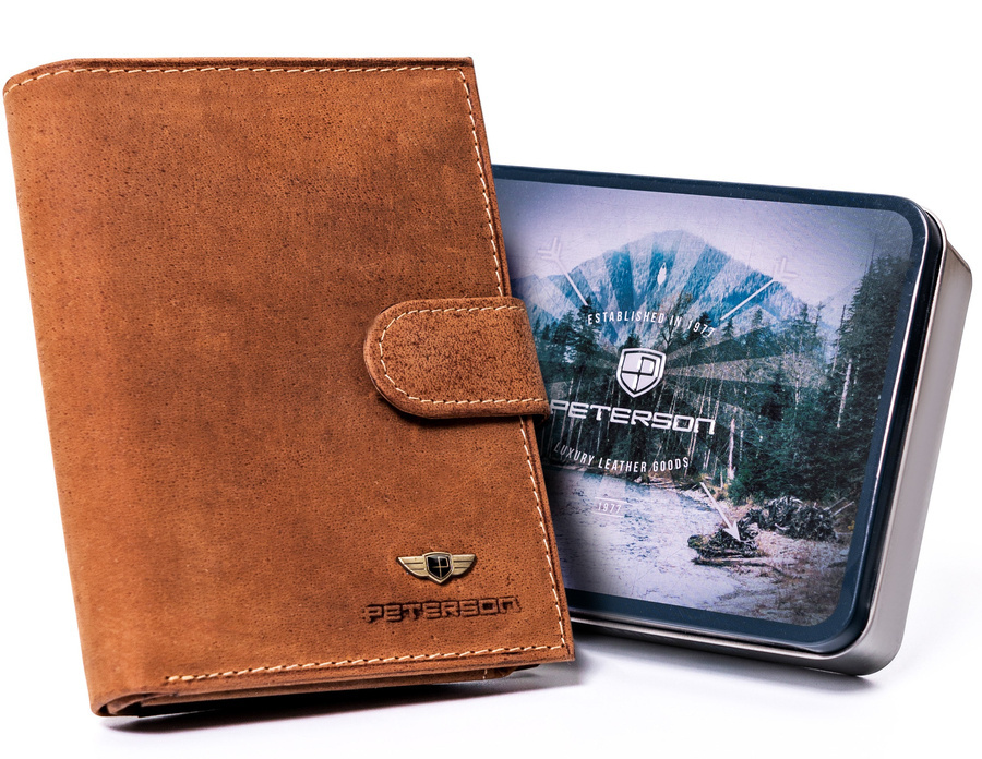 Klasyczny, skórzany portfel z zapinką na zatrzask – Peterson