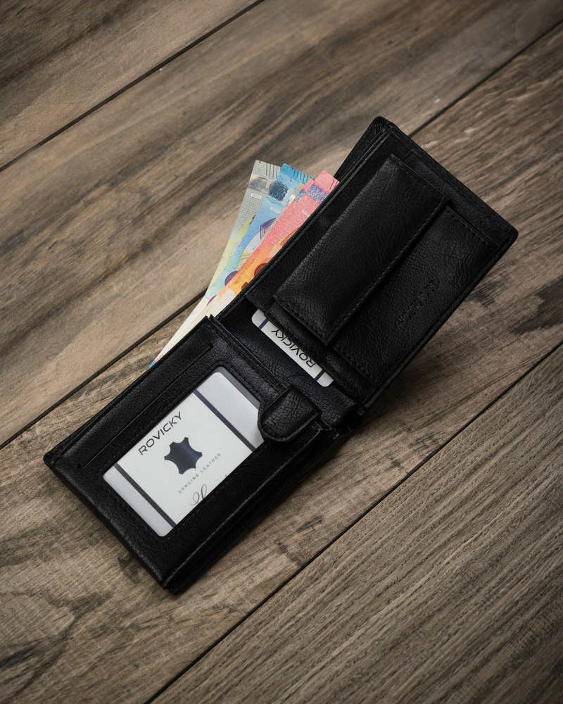 Podwójna kieszeń na banknoty jest przydatna dla Mężczyzny, który korzysta z dwóch walut.