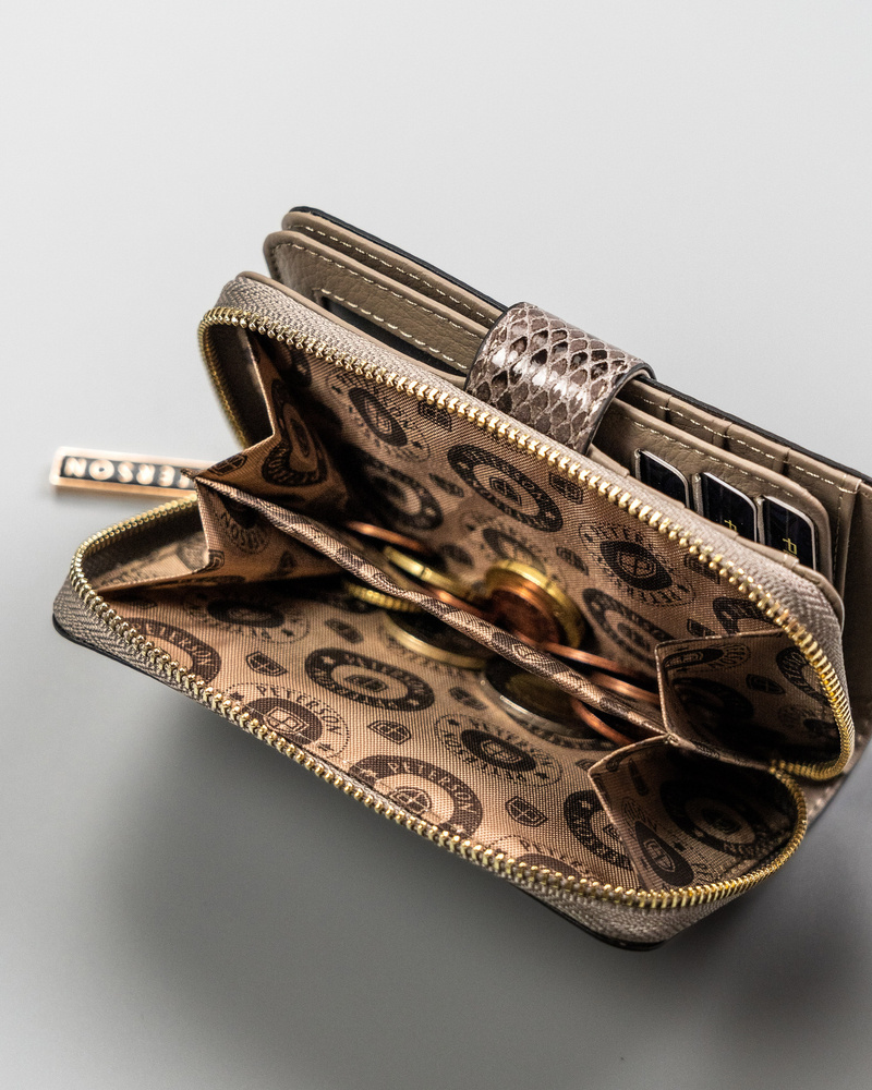 Portfel damski zachwycający swoim designem. Wężowa skóra to hit tego sezonu! Niezwykle efektowny i kobiecy wzór, który wspaniale ożywi Twoje stylizacje i nada im charakterystycznego pazura.